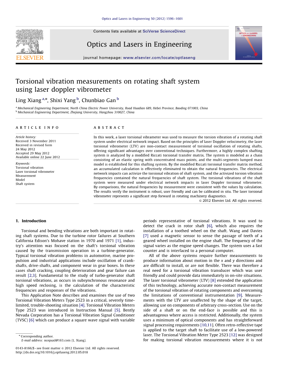 基于激光多普勒振动计的转轴系统的扭转振动测量外文翻译资料