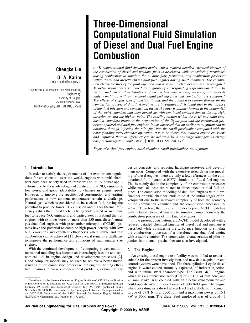 卡尔加里大学 机械制造工程部 刘成科、G. A.卡里姆 电子邮件:karim@ucalgary.ca 加拿大卡尔加里西北部