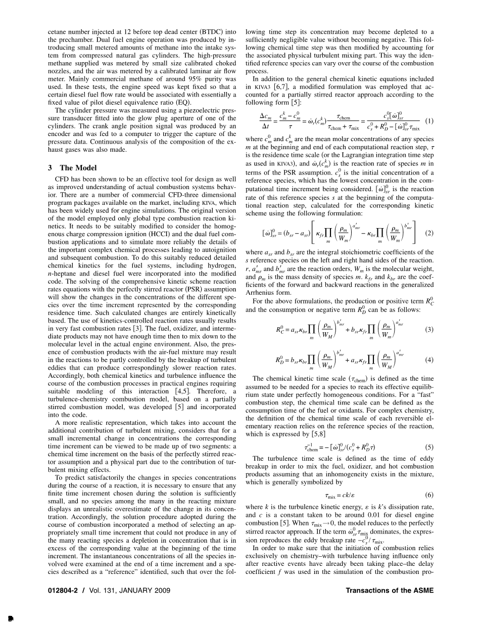其中和是在在每个计算反应步骤的开始和结束时,任何种类m的平均摩尔浓度,是停留的时间尺度(或用于KIVA3