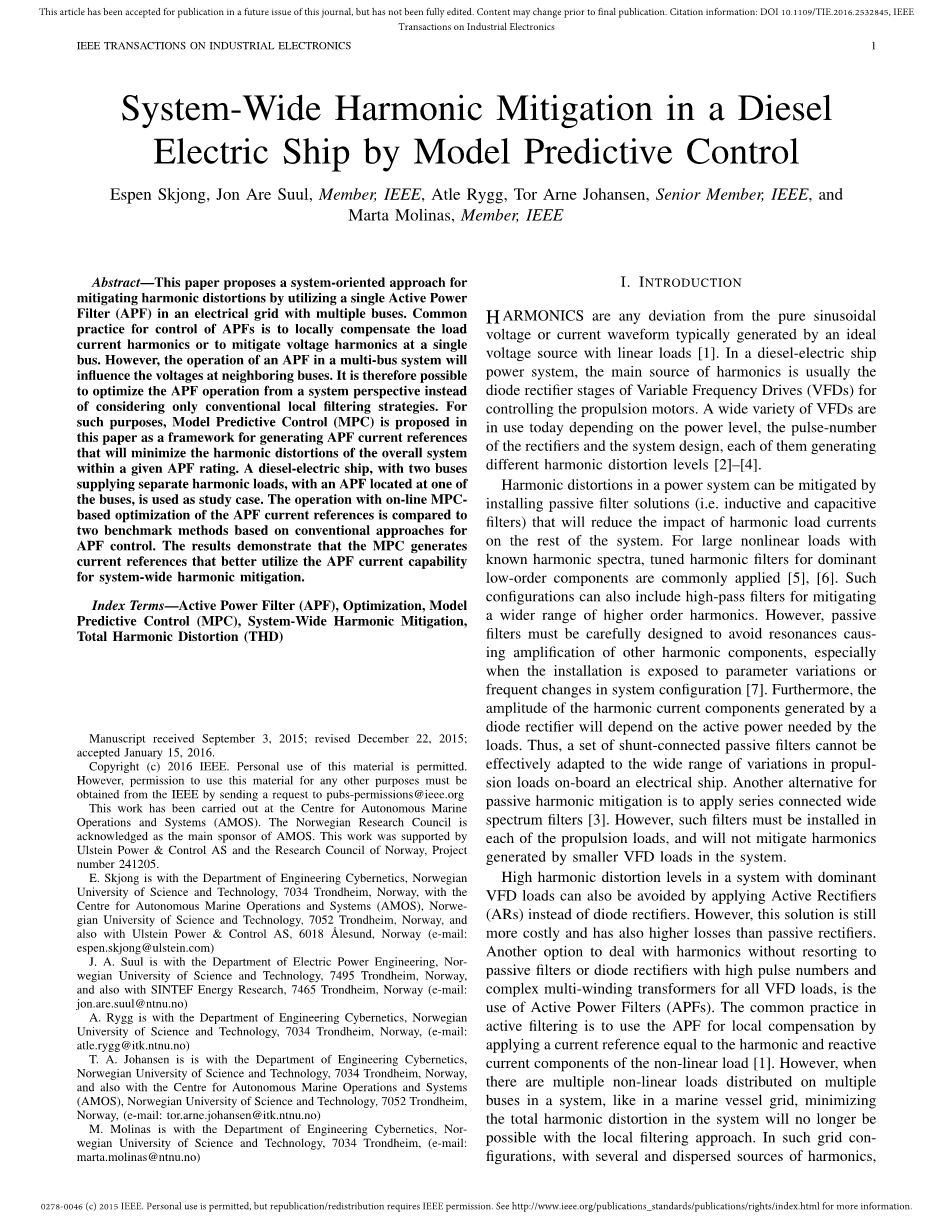 Espen Skjong, Jon Are Suul, Member, IEEE, Atle Rygg,Tor Arne Johansen, Senior Member, IEEE, and Marta Molinas, Member, IEEE