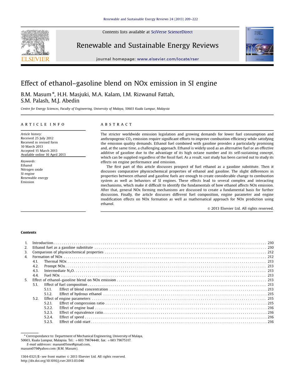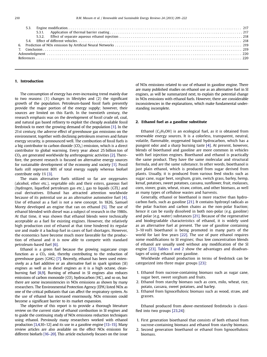 在SI发动机上做了相关的研究,并使用纯乙醇或乙醇-汽油混合作为燃料,在弹性燃料汽车上测试。结果部分显示,在乙醇和汽油之间性质存在一些不同之处。这些性质可以在燃料消耗、燃烧速度、燃烧温度、质量燃烧烧分数等,以及NOx排放方面影响。许多文献表明,乙醇NOx排放增加。相反的趋势也被很多研究者观察。很少有文献在乙醇NOx排放也发现不规则。在本节中,氮氧化物的排放的原因,将在乙醇-汽油混合物部分进行讨论,强调不同的燃料混合物,不同的发动机参