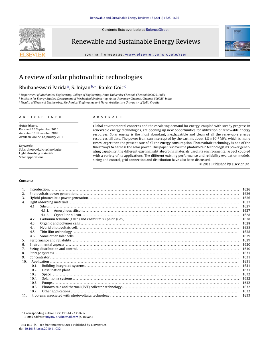 全球环境问题和对能源需求的不断增长,再加上可再生能源技术的稳步进展,正在为利用可再生能源资源开辟了新的机会。太阳能是迄今为止所有可再生能源资源最丰富,最清洁的。地球截获的太阳的功率约为1.8times;1011MW,比现在所有能源消耗的速率大许多倍。光伏技术是利用太阳能的最好的方法之一。本文回顾了光伏技术,其发电能力,所使用的不同现有光吸收材料,其环境方面以及各种应用。不同的现有性能和可靠性评估模型,