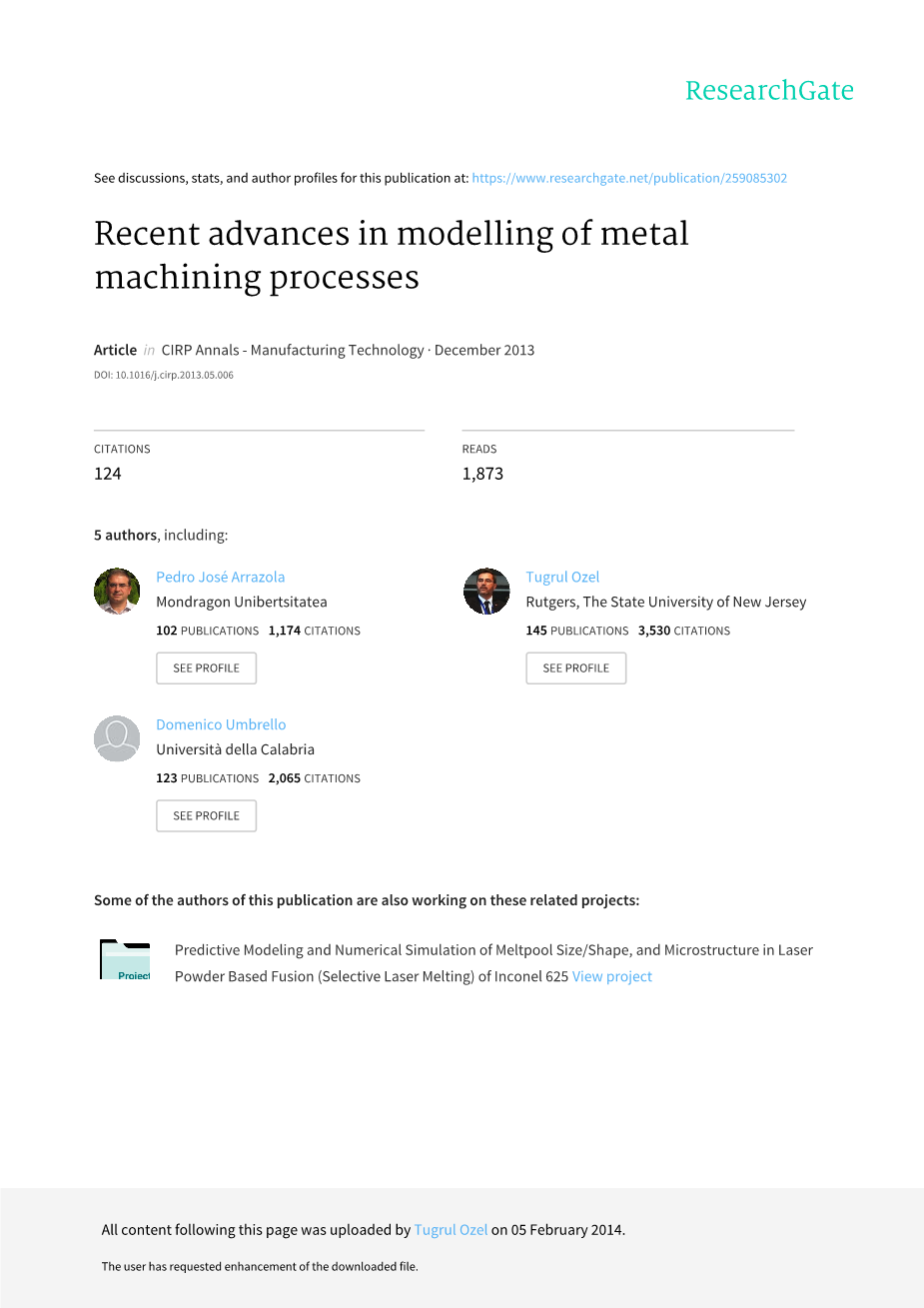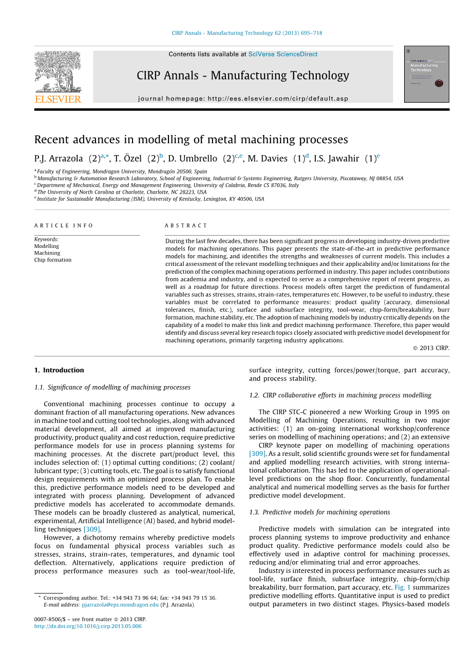 金属加工过程建模的最新进展外文翻译资料
