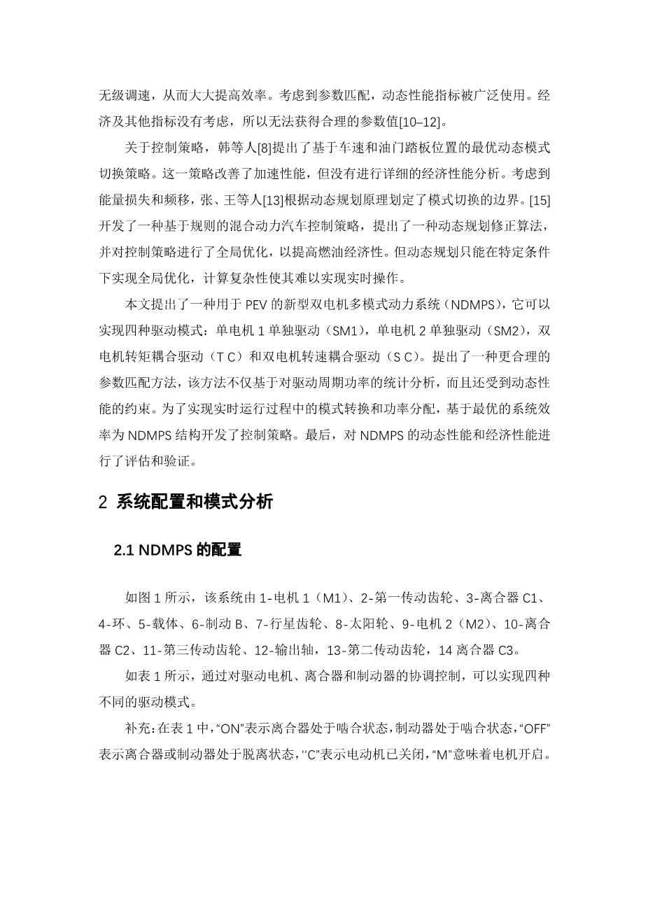 一种新型双电机多模式动力系统的参数匹 配与能量优化管理外文翻译资料