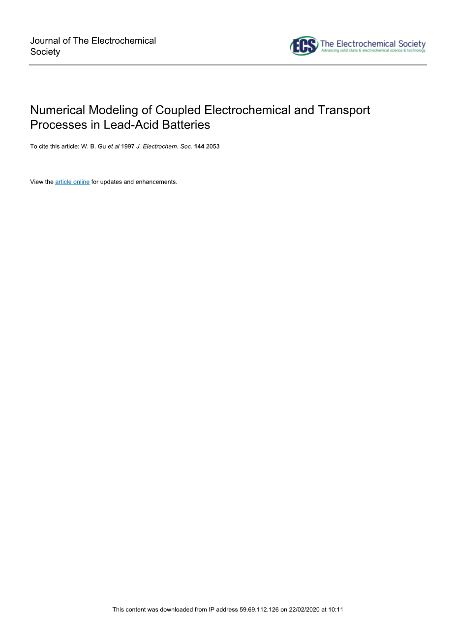 铅酸蓄电池电化学和传输耦合过程的数学模型外文翻译资料