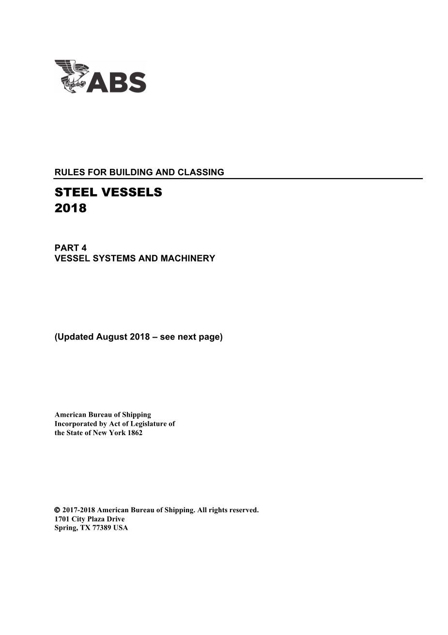第4部分提供了对90米及以上长度的自航船的机械的最低要求。 符合第4部分是对所有此类船只进行分类的一种条件,并且是分配4-1-1 / 1.5中指示的适当的机械类别标记的条件。第5C部分提供了针对每种船舶类型的机械附加要求。符合第5C部分的规定是分配其中指定的船型标记的条件,例如油船,客船,液化气船等。