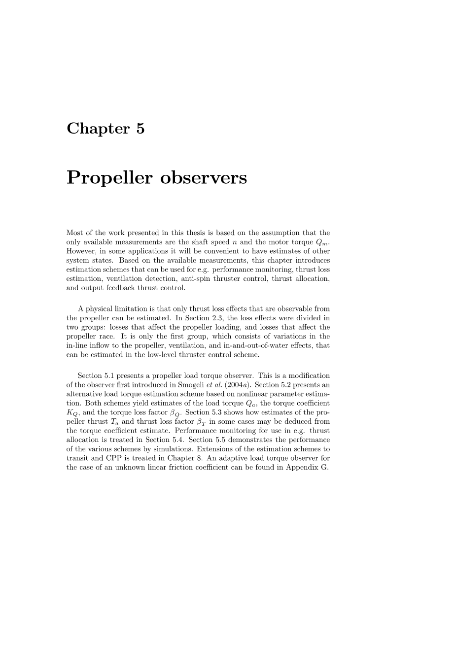 本文的大部分工作都是基于这样的假设:唯一可用的测量值是轴速n和电机转矩Qm。然而,在某些应用程序中,对其他系统状态进行估计是很方便的。在现有测量的基础上,本章介绍了可用于性能监测、推力损失估计、通风检测、反旋推力器控制、推力分配和输出反馈推力控制的估计方案。一个物理限制是,只有推力损失的影响,从螺旋桨可以观察到可以估计。