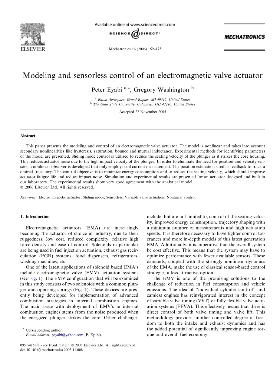电磁阀执行器的建模与无速度传感器控制外文翻译资料