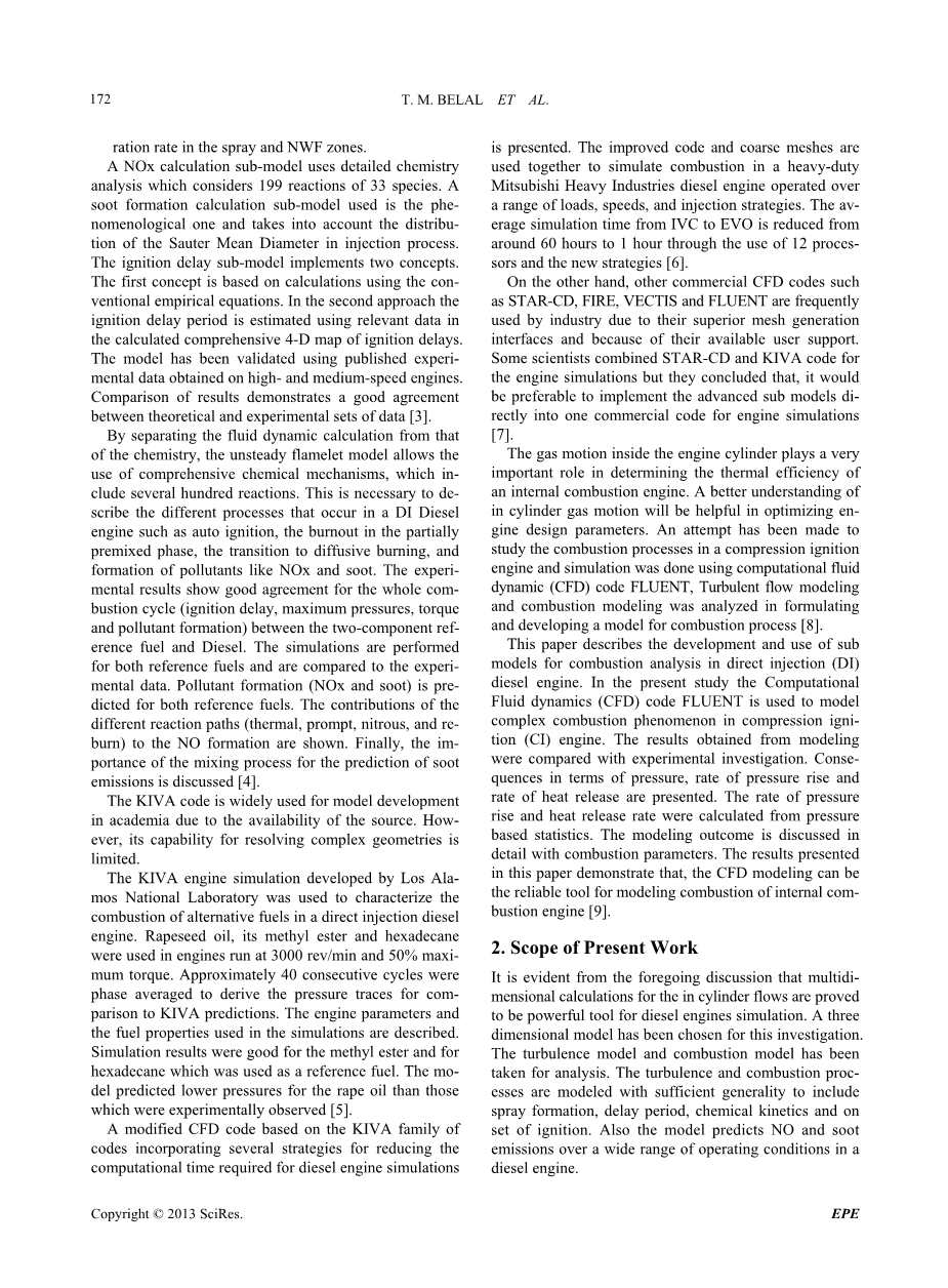 DI柴油在缸内流体的流动和湍流燃烧过程以及喷雾形成的建模有足够的普遍性。我们通过点火,延迟燃烧和化学动力学的知识充分模拟了发动机循环。
