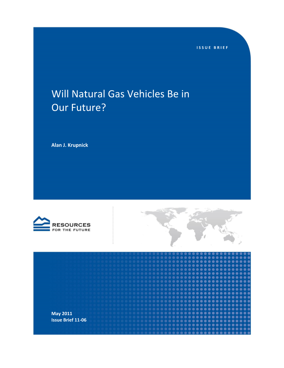 这个简单的说明是为了将天然气车辆作为合理的选择去调查赞成和反对天然气车辆的证据,这个证据主要侧重在与使用压缩天然气运行的轻型车辆,传统汽油车和混合动力电动汽车相比,和使用液化天然气的重型卡车相比,与使用柴油的卡车相比。这些比较基于几个原始的分析:使用国家能源数据,建立系统(如改性RFF),汽车制造商和其他关键的来源。