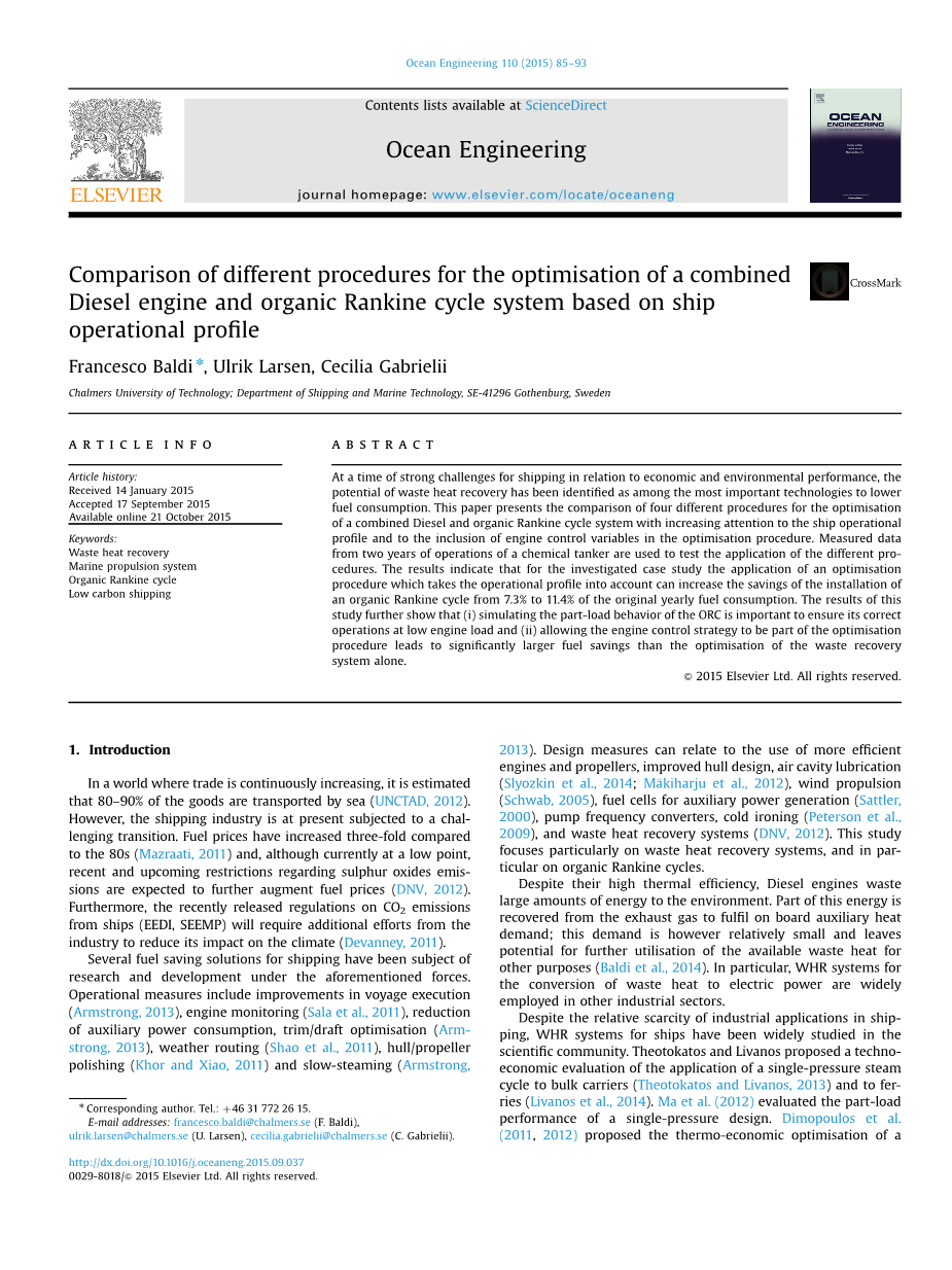 基于船舶运行状态对应用有机朗肯循环系统的柴油机不同优化程序的比较外文翻译资料