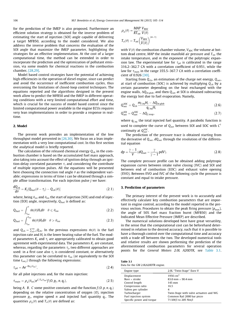 从开始,在燃烧的起始角度处(SOC)对电荷净能量的评估是通过乘以一个特定参数来实现的,这个特定参数取决于与气缸壁的热交换量,在SOI中是通过减去由于燃油蒸发所造成的能量损失来获得的。即:
