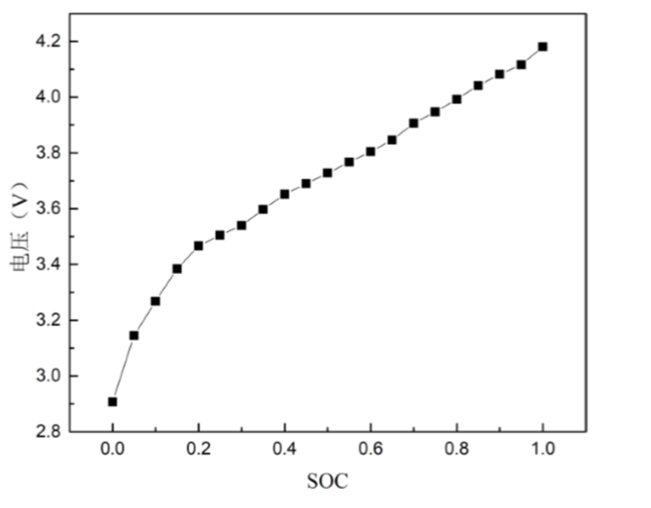 如图2-4中,我们可以发现放电OCV曲线可以被划分为两个部分,当SOC<0.3时,电压随着SOC的增大而快速递增;相反,当SOC>0.3时,斜率放缓,电压增加得缓慢。趋近于线性增加。