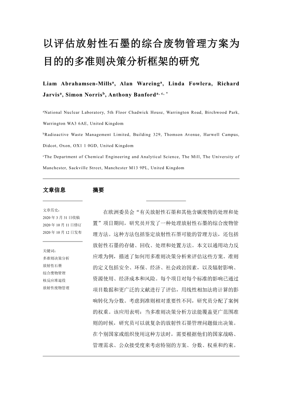 以评估放射性石墨的综合废物管理方案为目的的多准则决策分析框架的研究外文翻译资料