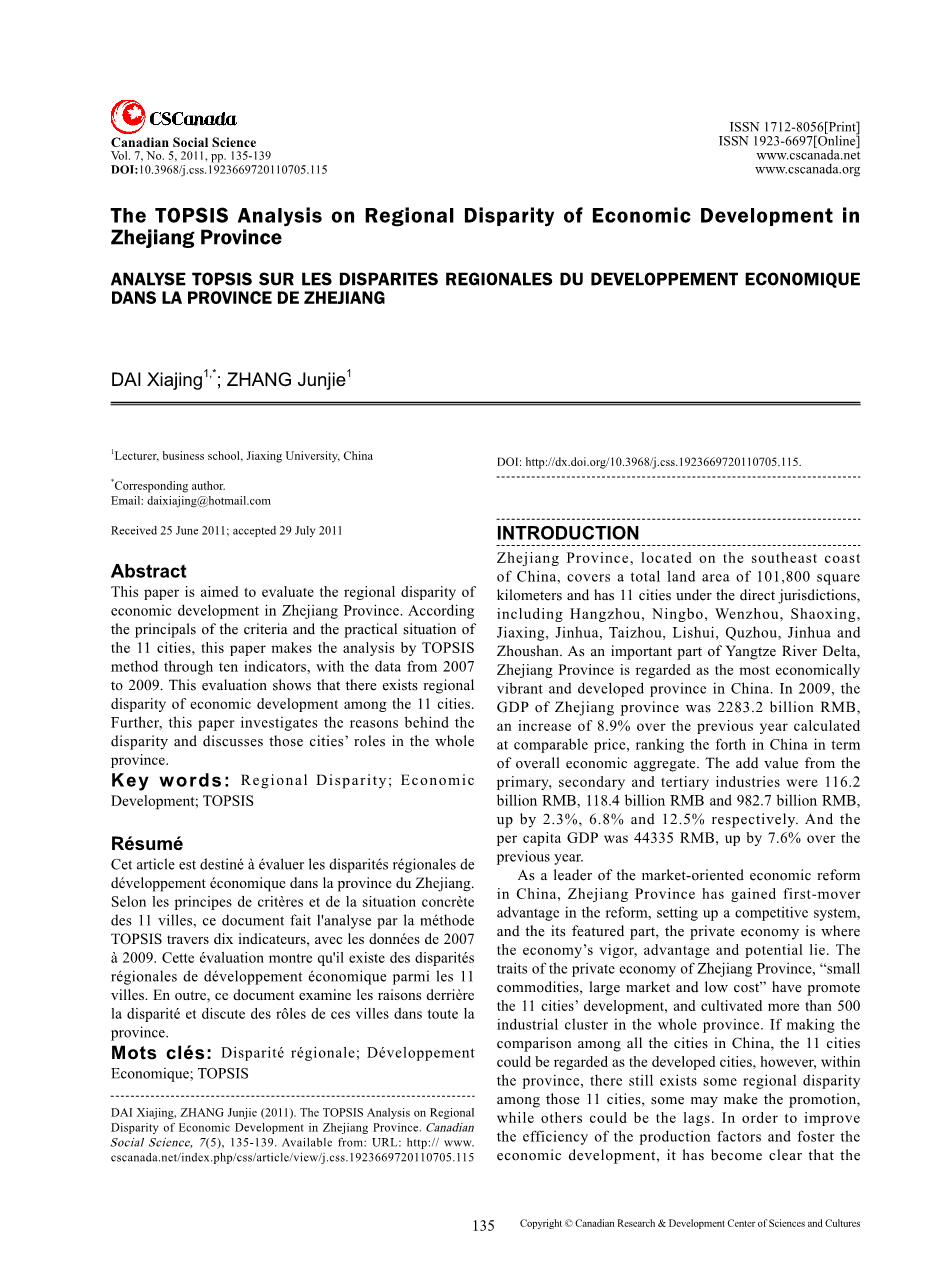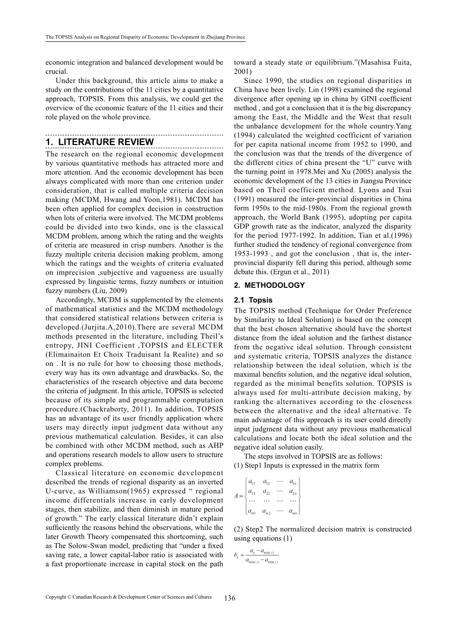 浙江省区域经济发展差距的TOPSIS分析外文翻译资料