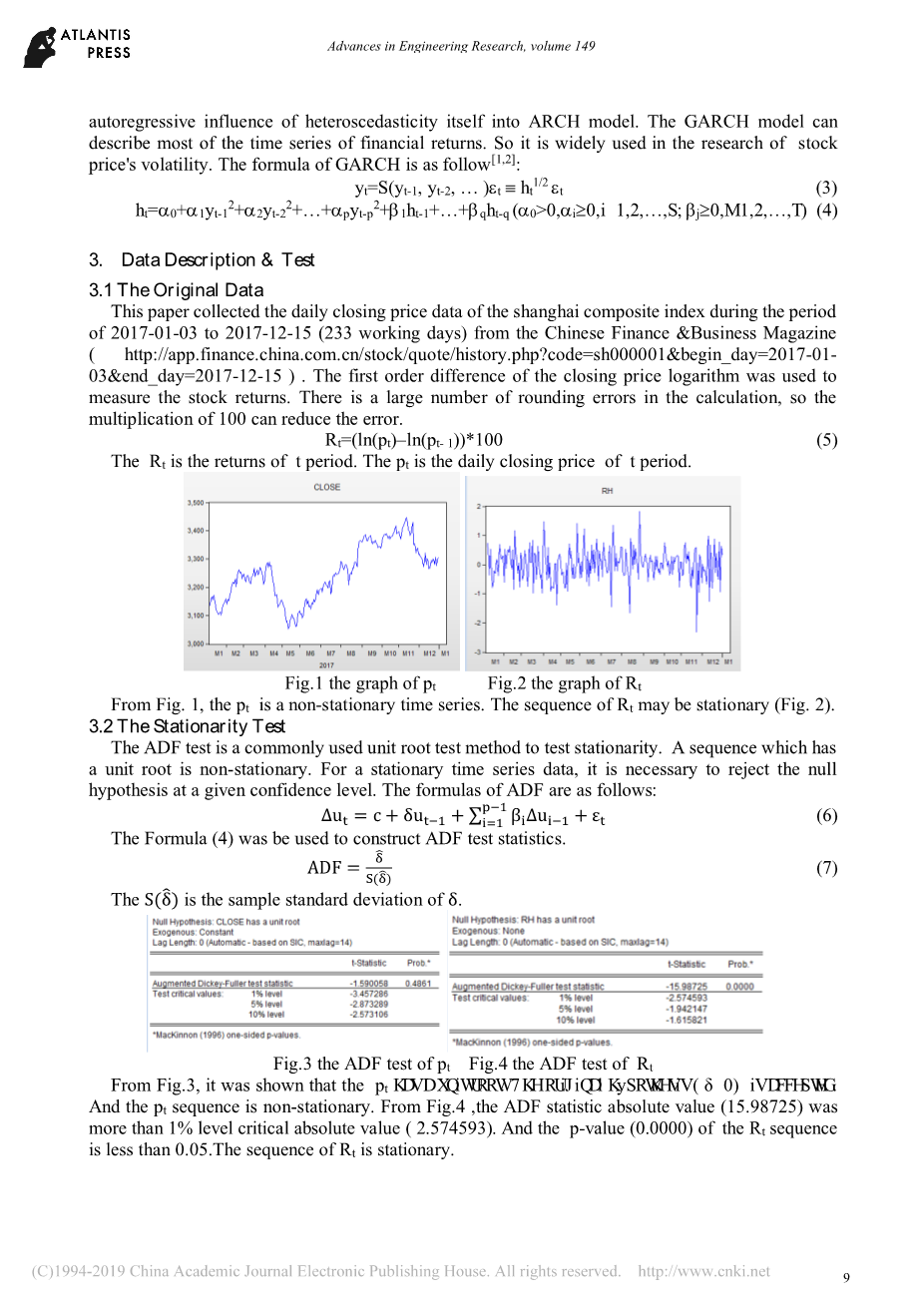 在有限样本情况下,模型会出现阶数过多的情况,而GARCH模型弥补了这一情况所导致的计算效率和精度不足的缺点,而且GARCH模型具有良好的粗尾处理能力。 现在,GARCH模型已经成为衡量金融市场波动性的最重要工具之一。 本文收集了2017年1月3日至2017年12月15日(233个工作日)上海综合指数的每日收盘价数据,并采用GARCH模型解决了上海综合指数的预测问题。