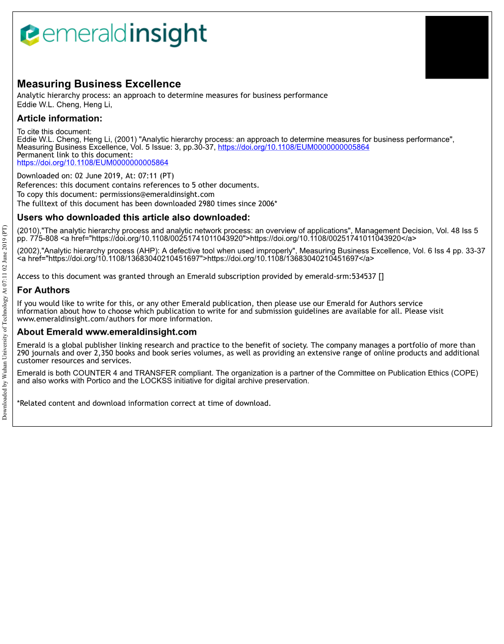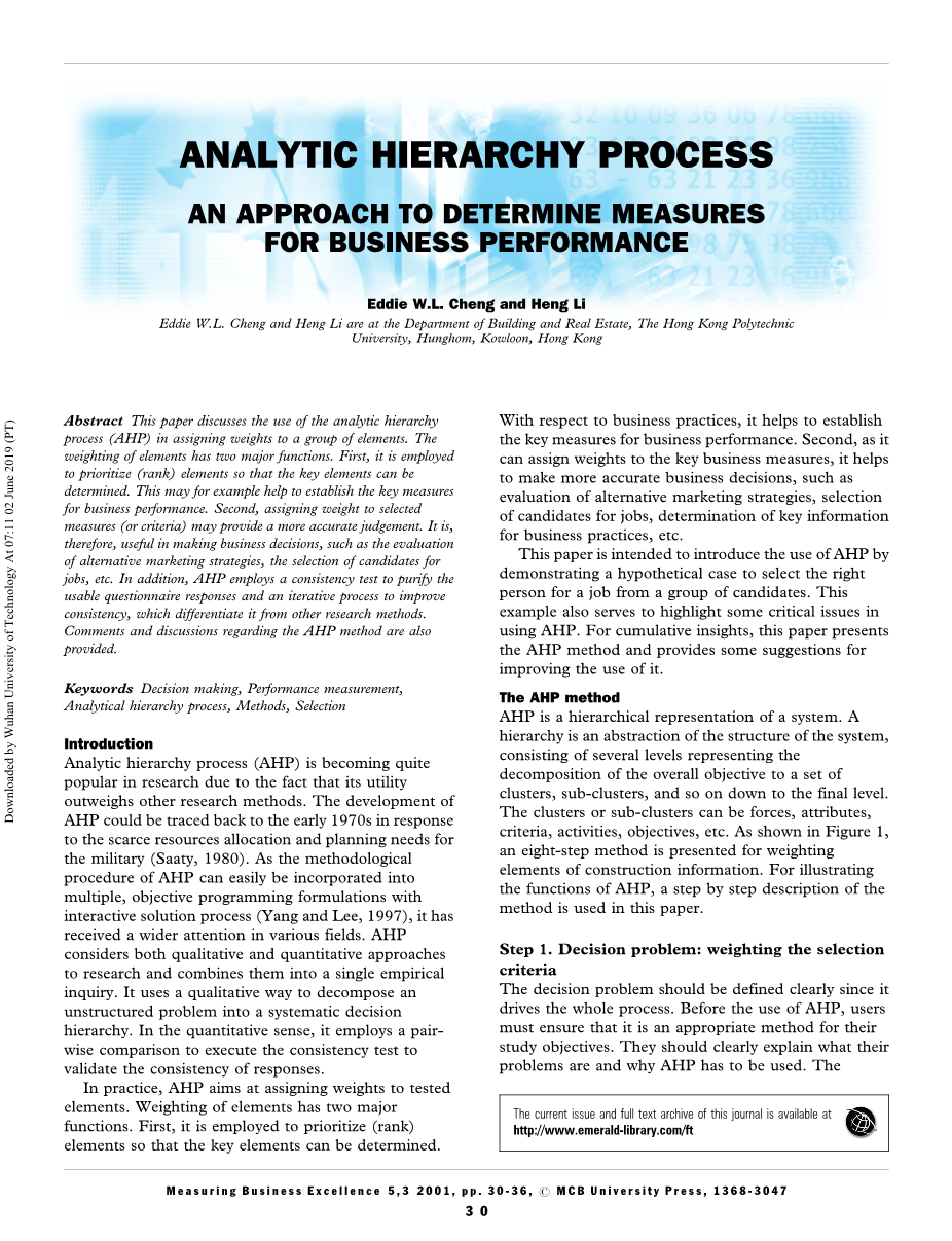 层次分析法:确定业务绩效衡量标准的方法外文翻译资料