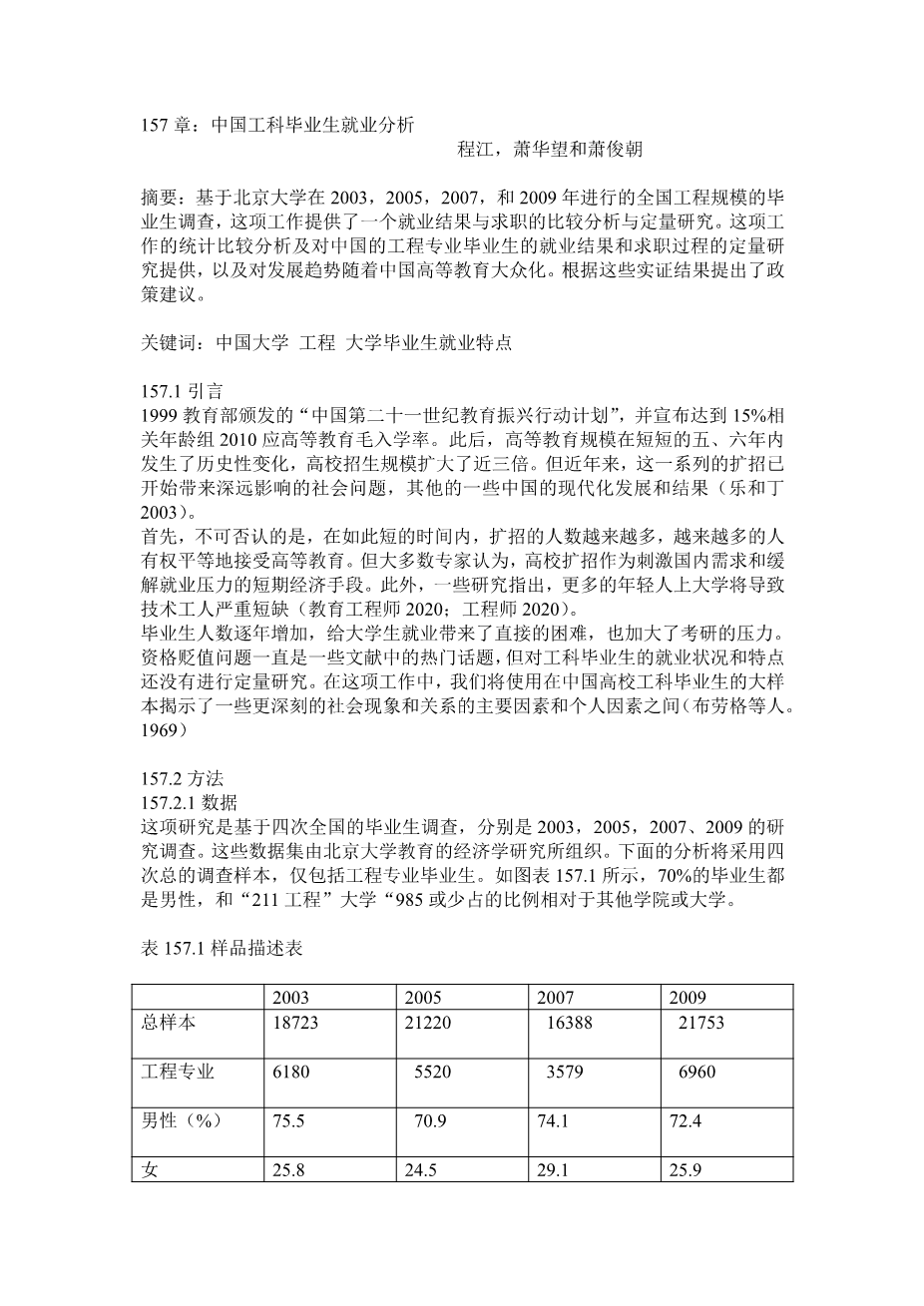 157章:中国工科毕业生就业分析外文翻译资料