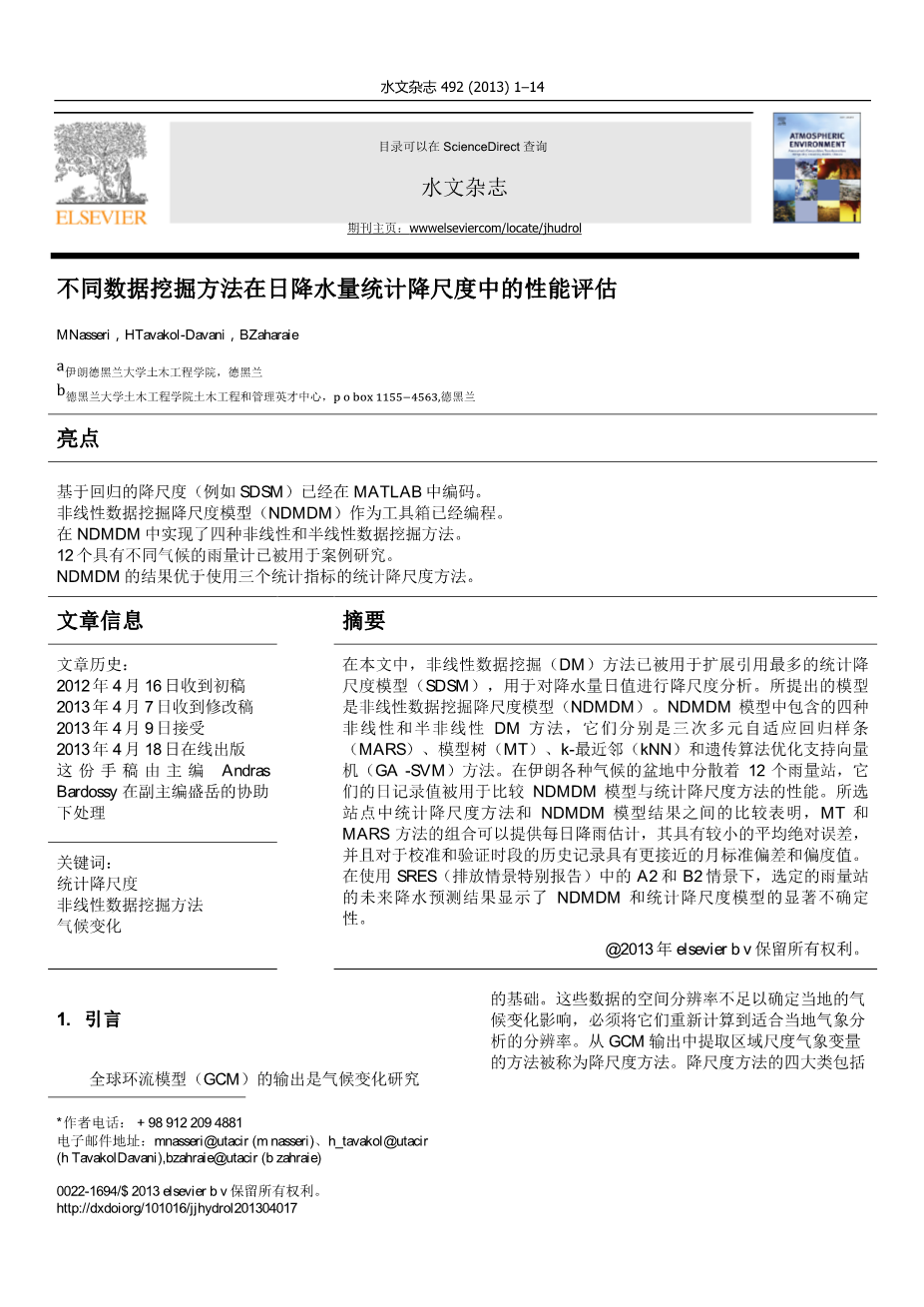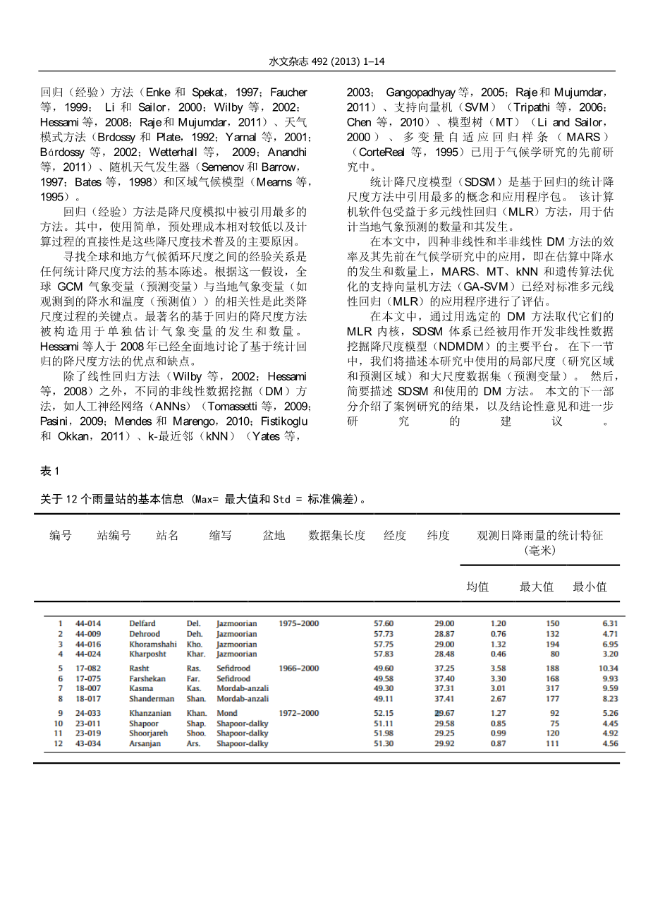 不同数据挖掘方法在日降水量统计降尺度中的性能评估外文翻译资料