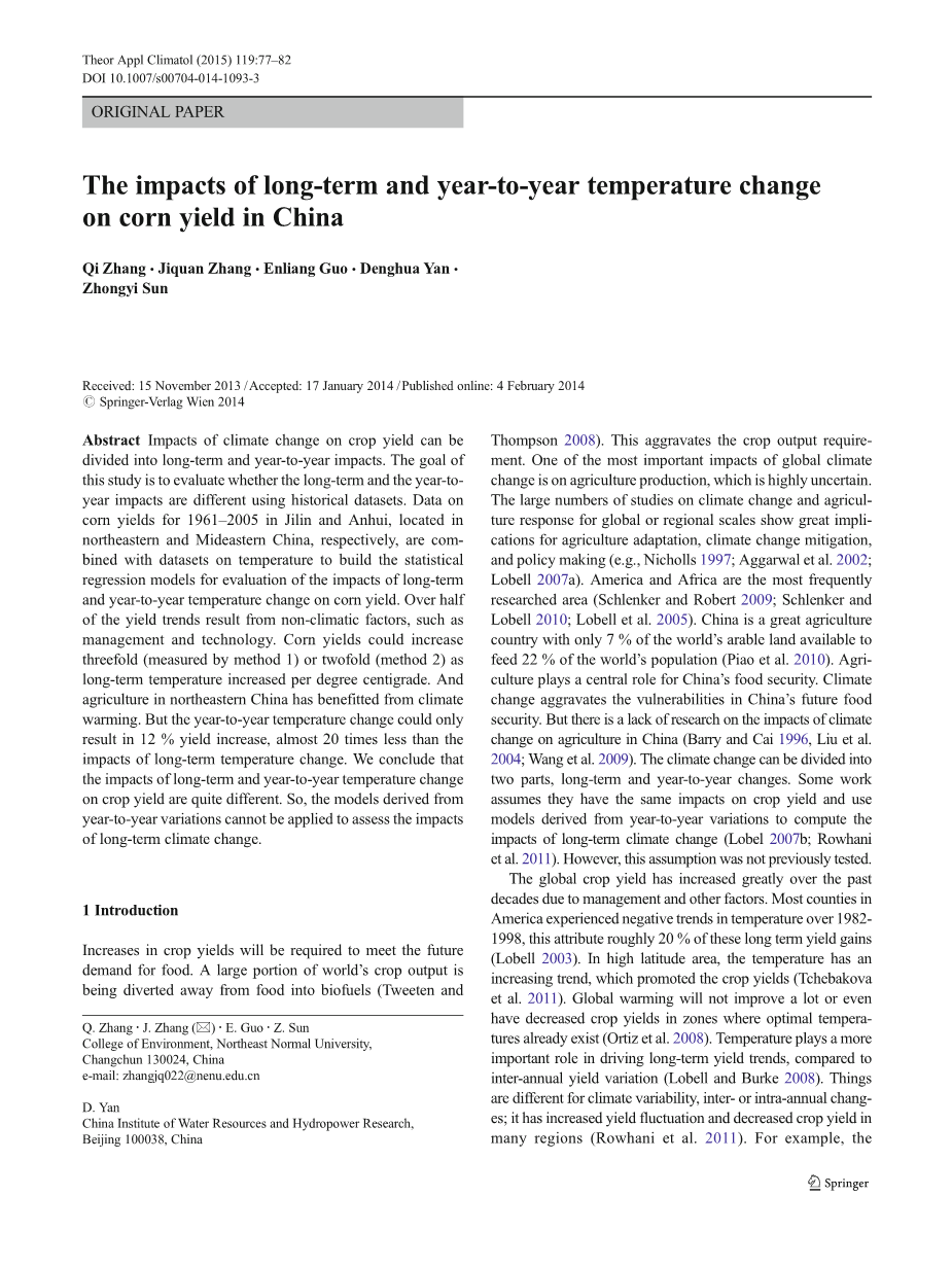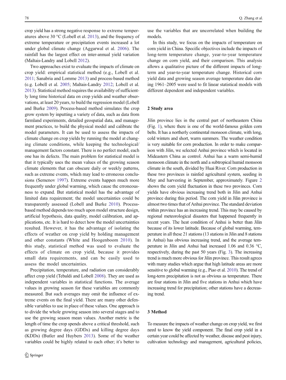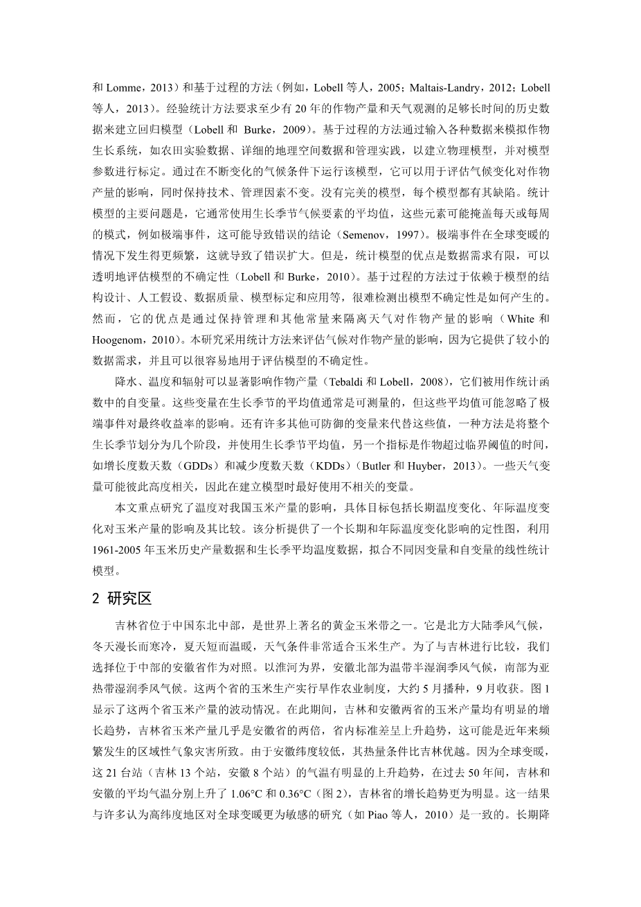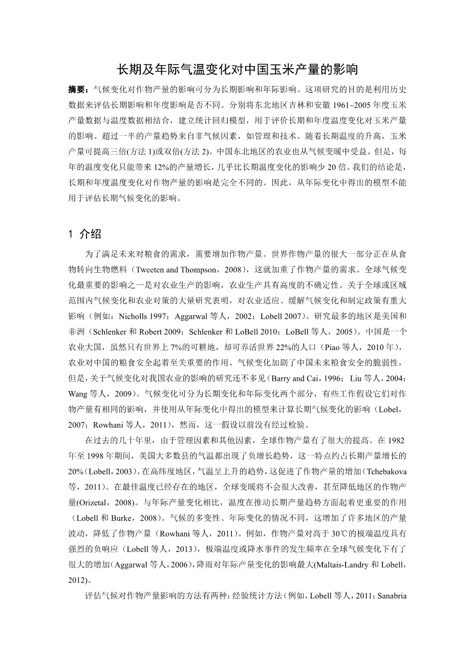 长期及年际气温变化对中国玉米产量的影响外文翻译资料