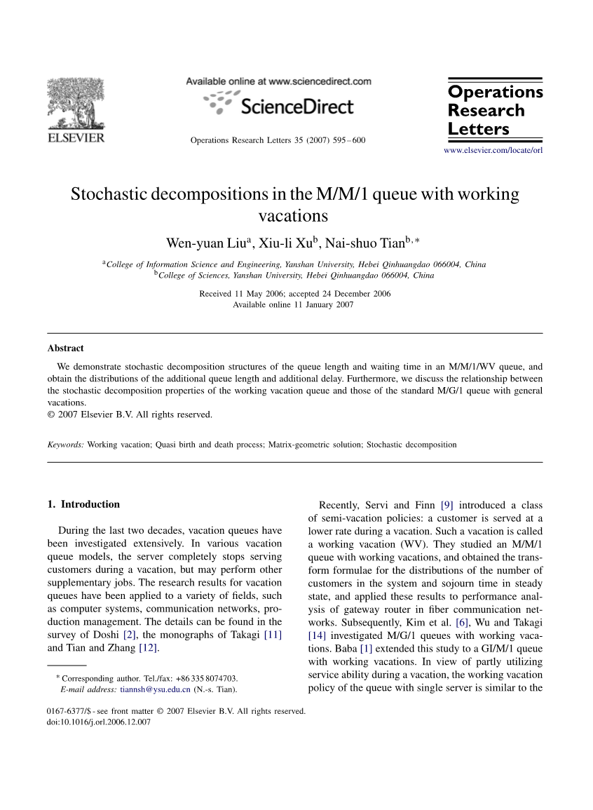 带工作休假的M/M/1排队系统的随机分解.外文翻译资料