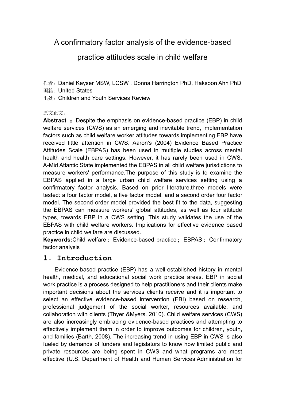 儿童福利实证实践态度量表的验证性因素分析外文翻译资料