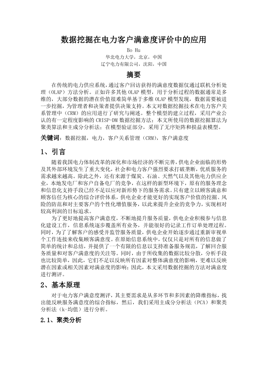 数据挖掘在电力客户满意度评价中的应用外文翻译资料