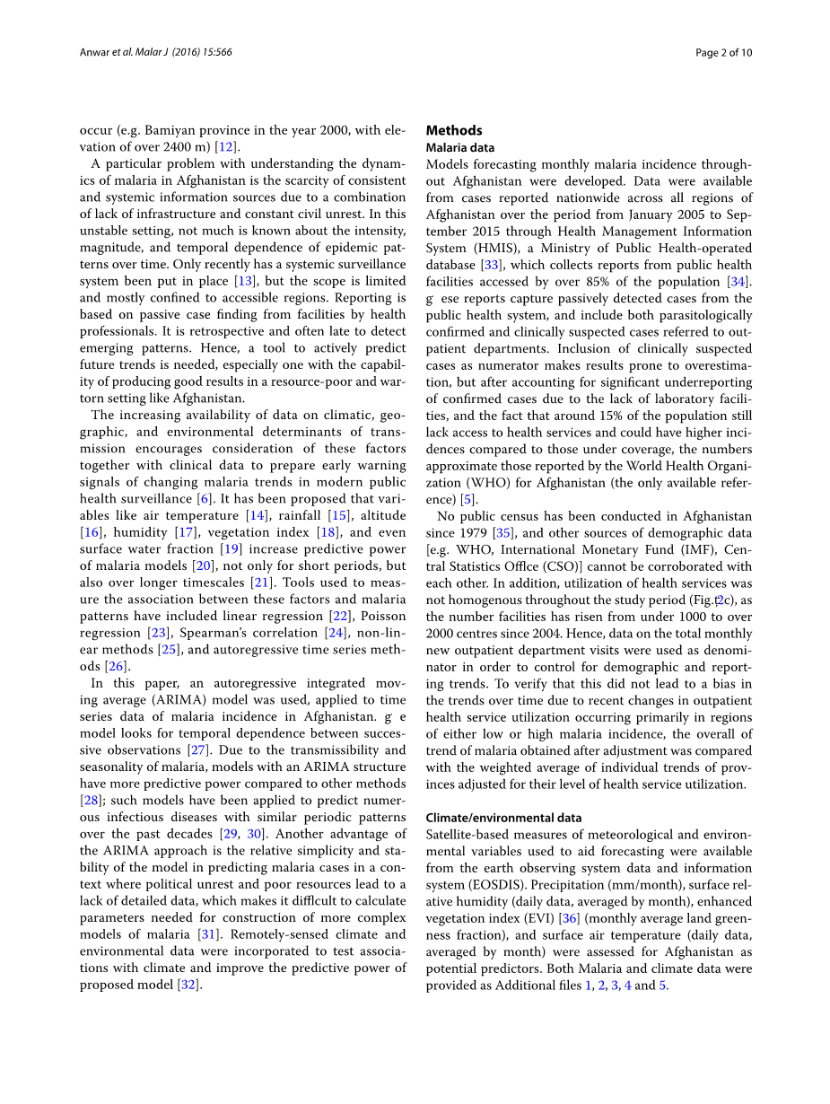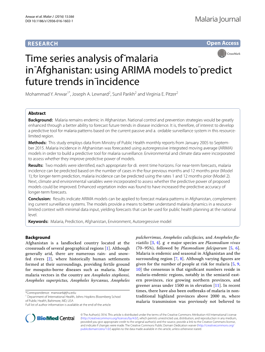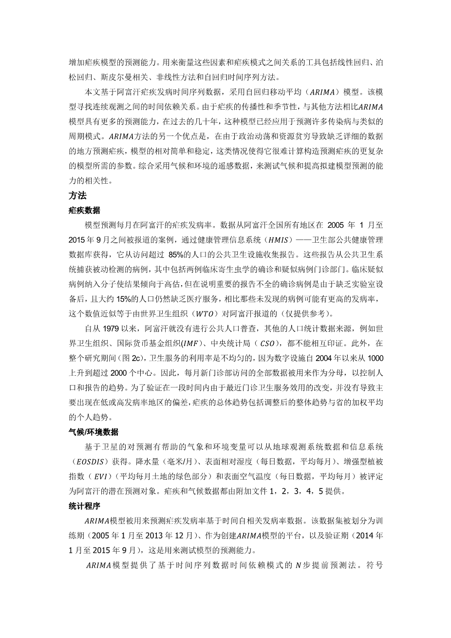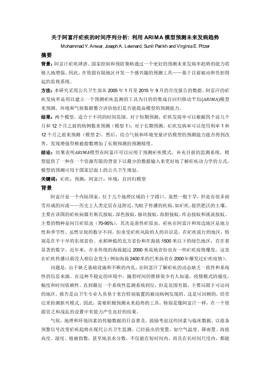 关于阿富汗疟疾的时间序列分析:利用ARIMA模型预测未来发病趋势外文翻译资料