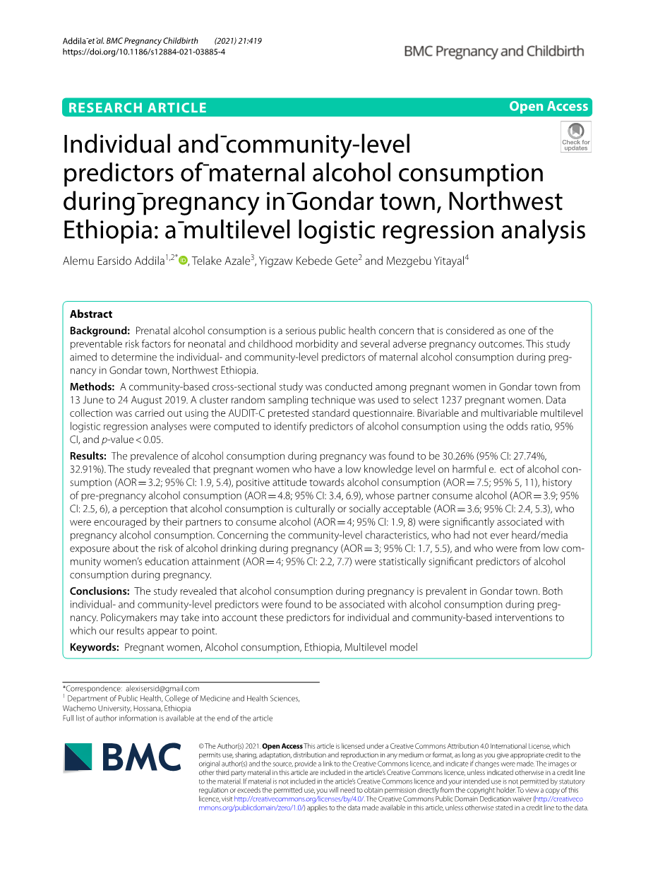 原文作者:Alemu Earsido Addila, Telake Azale, Yigzaw Kebede Gete amp; Mezgebu Yitayal