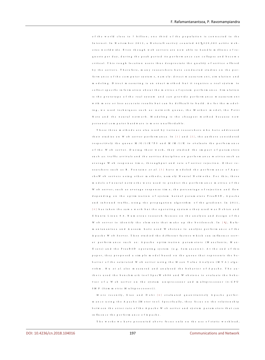 近几十年来, 互联网用户数量没有停止增长. 据一些研究显示, 2012年, 与世界上接近70亿的居民相比, 互联网用户的统计数字增长了23多亿;三分之一的人口与互联网相连. 2012年11月, Netcraft调查统计了全球625329303个活跃网站. 尽管Web服务器现在每天能够处理数百万个请求, 但在高峰时期, 它的性能可能会崩溃并变得至关重要. 因此, 这种粗糙的位置用户会降低服务器提供的服务质量. 因此, 许多研究人员对计算机系统的性能进行了研究, 即:直接测量、仿真和建模. 直接测量是一种精确的方法, 但它需要一个真实的系统来收集有关系统性能指标的特定信息. 仿真是真实系统的原型, 可以为性能测量提供或多或少精确的结果, 但很难建立. 在建模方面, 采用了网络队列、马尔可夫模型、Petri网和神经网络等技术. 建模是最便宜的方法, 因为现在个人电脑硬件更难以负担.