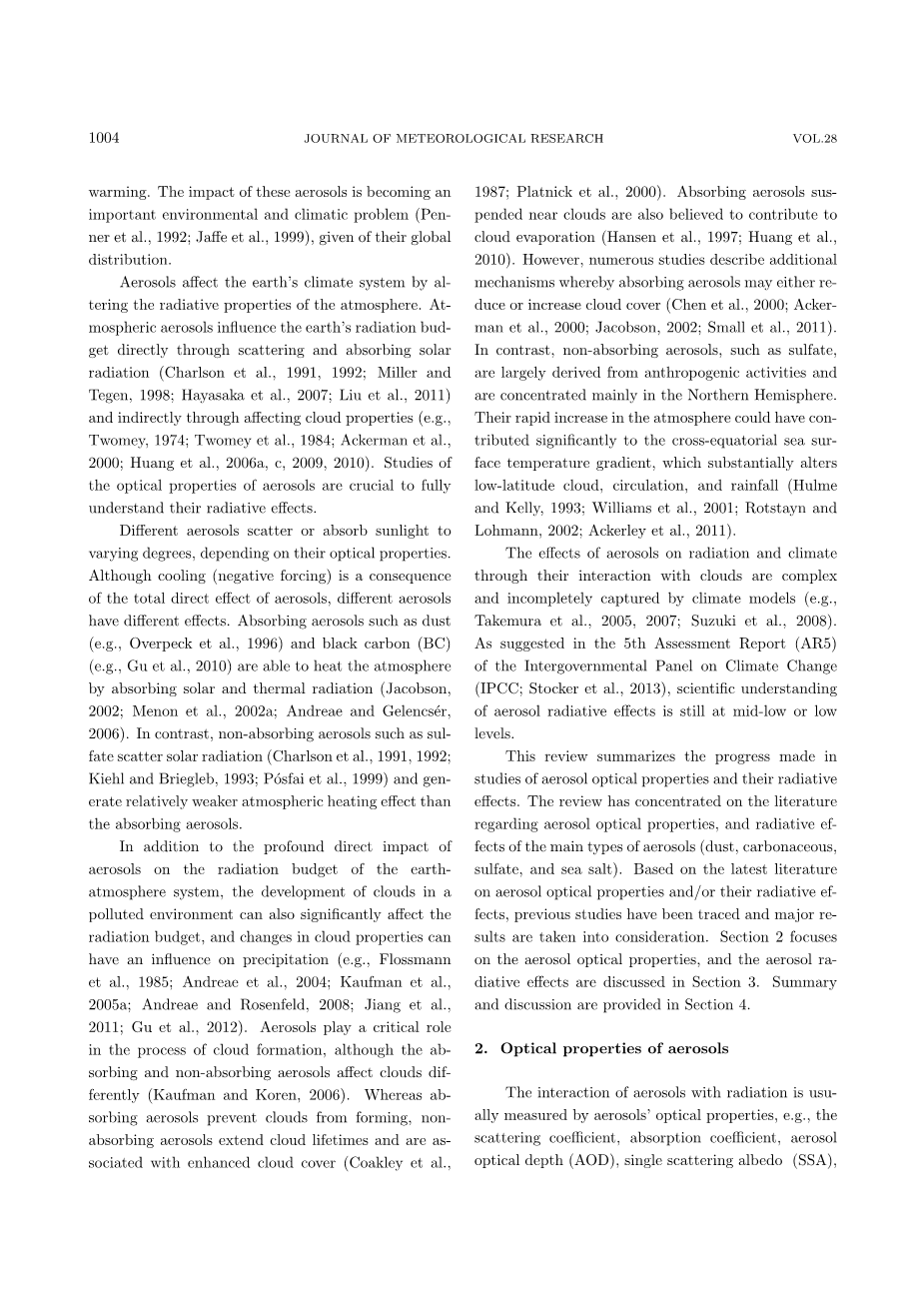 气溶胶光学特性和辐射效应研究进展外文翻译资料