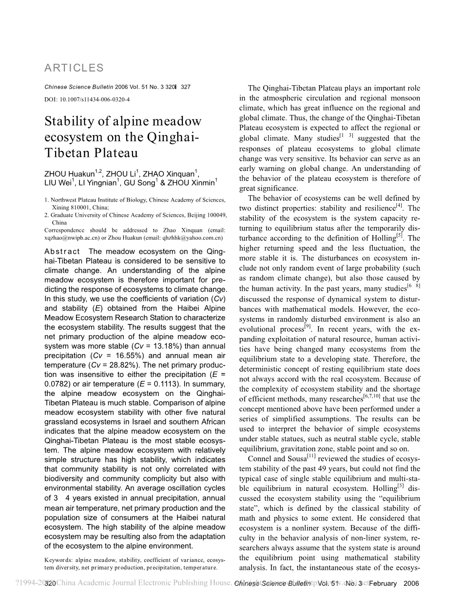 青藏高原高寒草甸生态系统的稳定性外文翻译资料