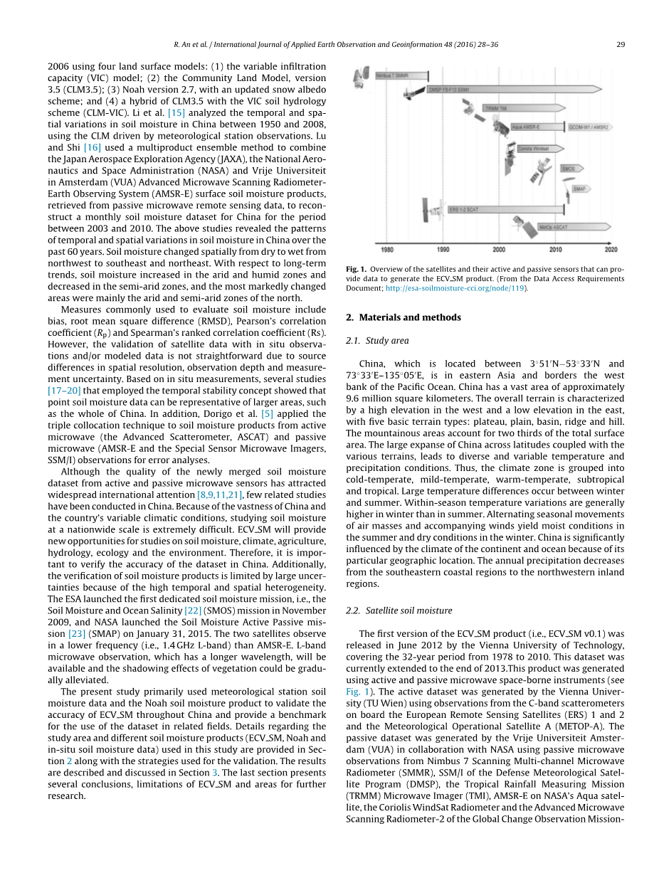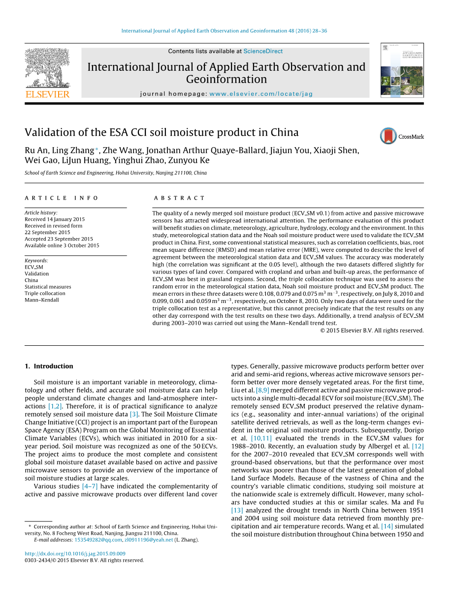 ESA CCI土壤湿度产品在中国区域的验证外文翻译资料