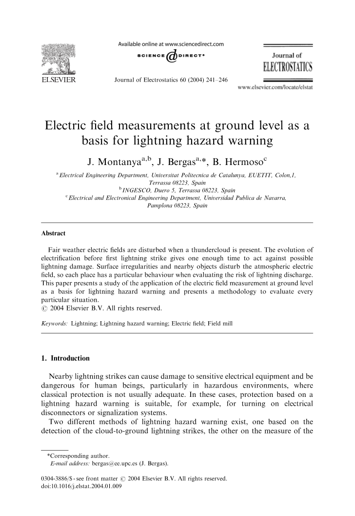雷电灾害预警存在两种不同的方法,一种是基于云对地闪击的检测,另一种是基于对地面电场静态分量的测量。本文侧重于第二个。