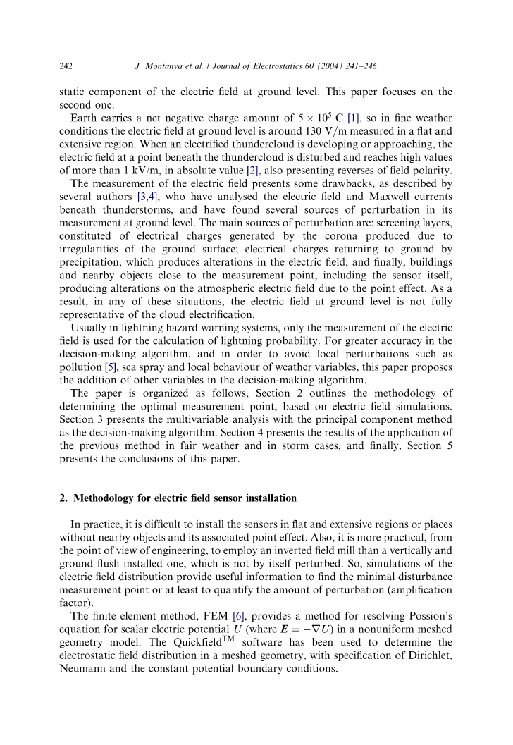 本文组织如下,第二节概述了基于电场仿真确定最优测量点的方法。第三节介绍了多变量分析与主成分方法结合作为决策算法。第四部分介绍了在晴朗天气和风暴的情况下应用之前方法的结果,最后,第五节给出了本文的结论。
