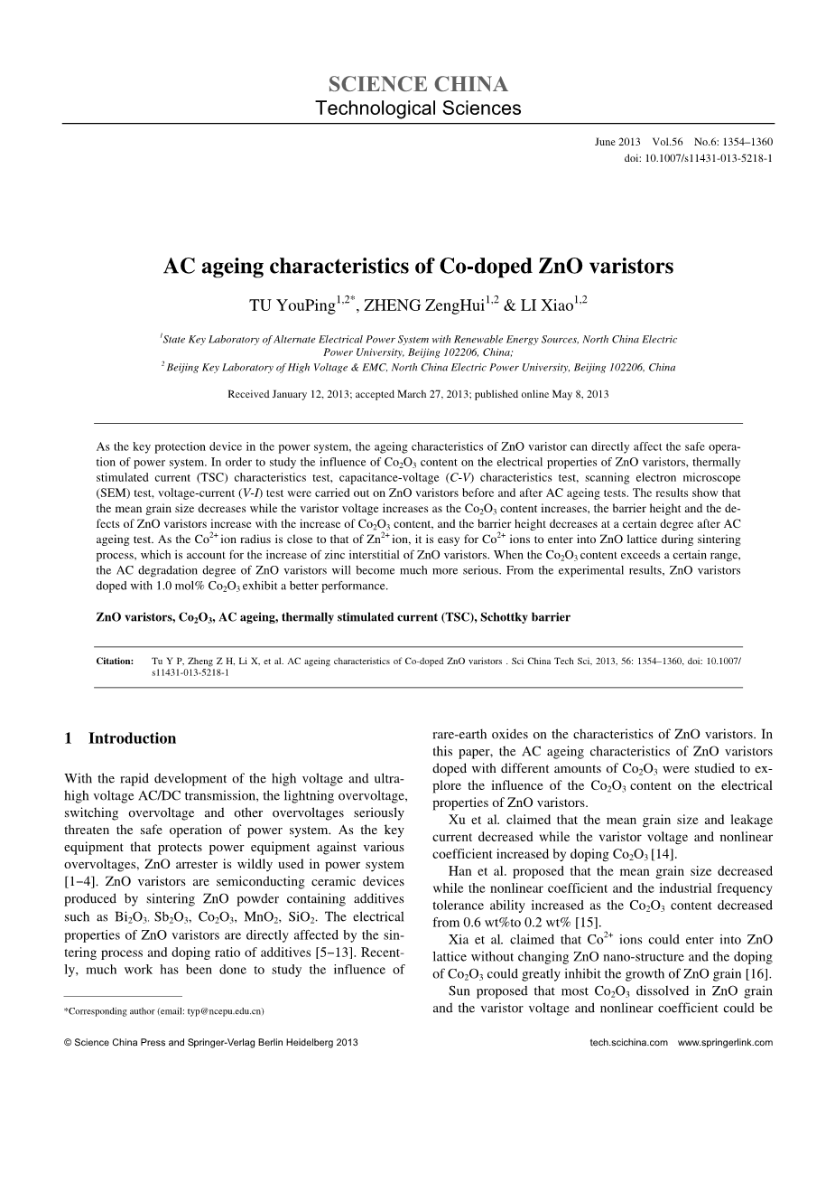 共掺杂氧化锌压敏电阻器的交流老化特性