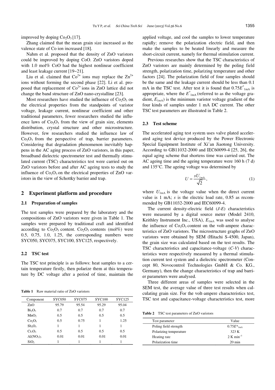共掺杂氧化锌压敏电阻器的交流老化特性外文翻译资料