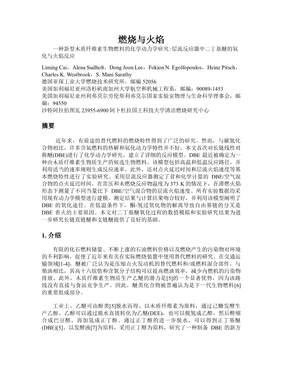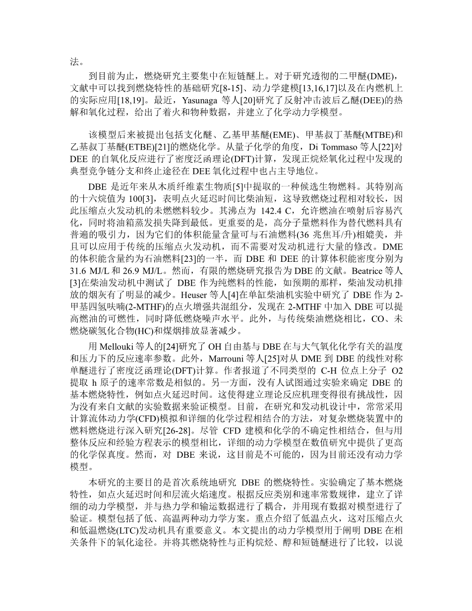 一种新型木质纤维素生物燃料的化学动力学研究:层流反应器中二丁基醚的氧化与火焰反应外文翻译资料