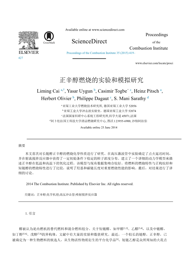 正辛醇燃烧的实验和模拟研究外文翻译资料