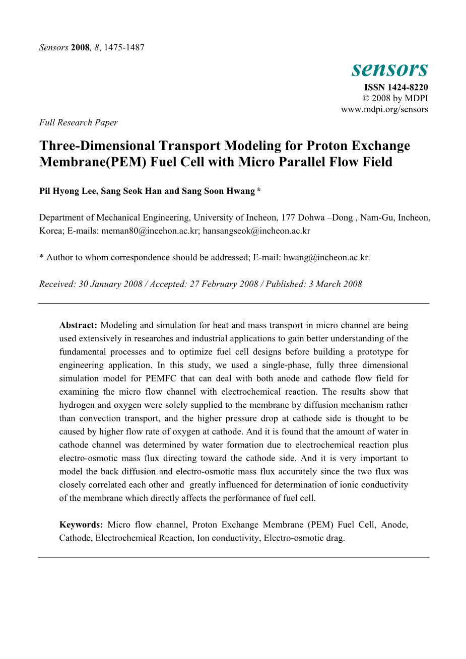 质子交换膜(PEM)燃料电池微平行流场三维输运建模外文翻译资料