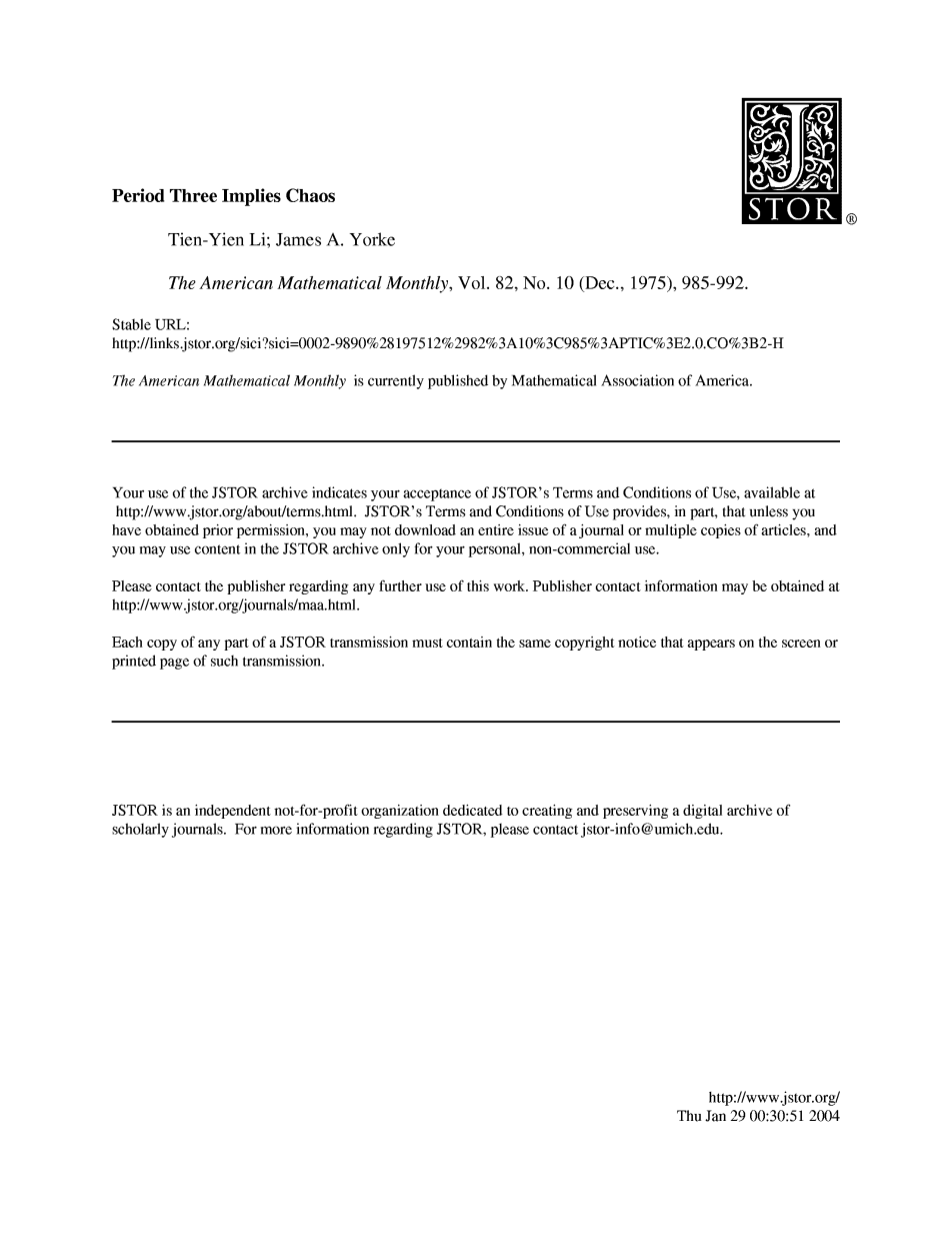 Tien-Yien Li;James A.Yorke