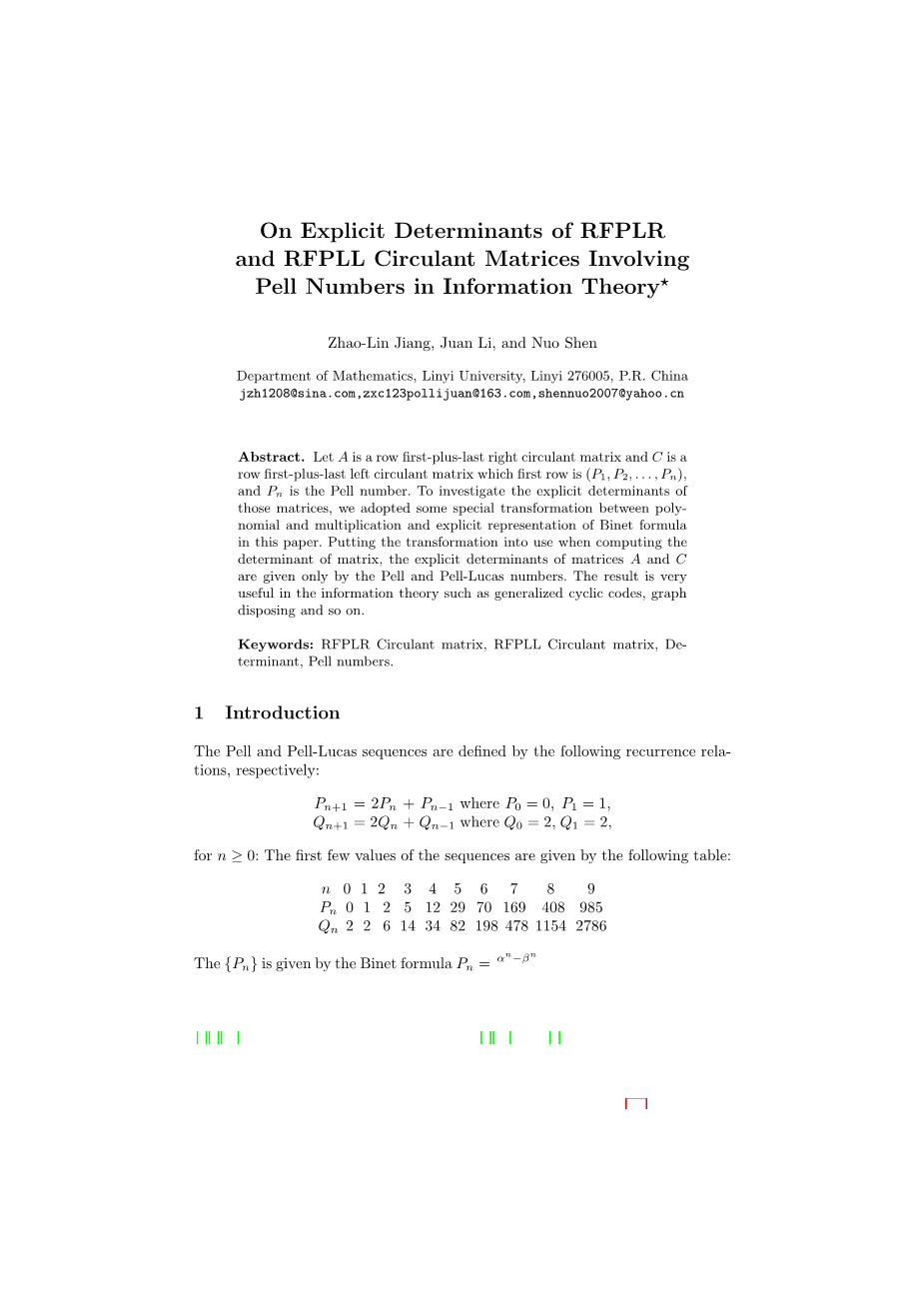 在信息理论中关于佩尔数的行首加尾左右循环矩阵显式行列式外文翻译资料