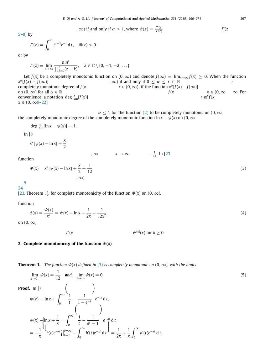 [9] B.-N. Guo, F. Qi, A completely monotonic function involving the tri-gamma function and with degree one, Appl. Math. Comput. 218 (19) (2012) 9890–9897.