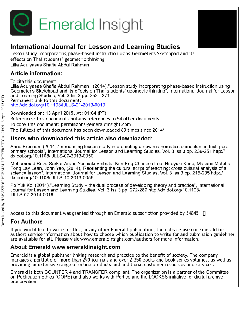 Lesson study incorporating phase-based instruction using Geometerrsquo;s Sketchpad and its effects on Thai studentsrsquo;geometric thinking