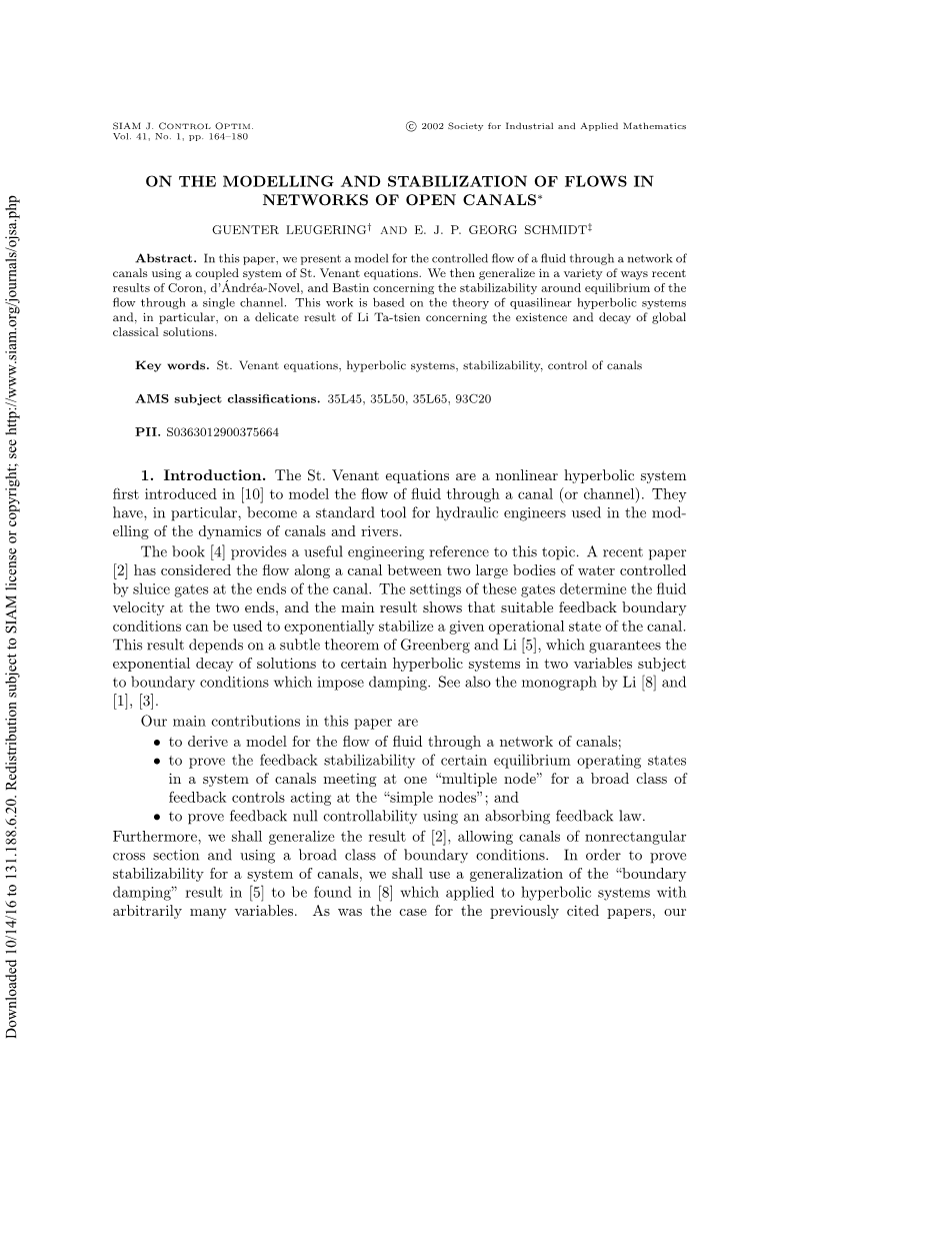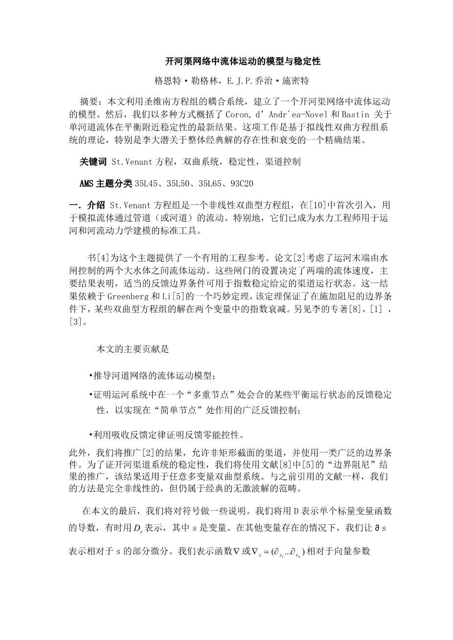 开河渠网络中流体运动的模型与稳定性外文翻译资料