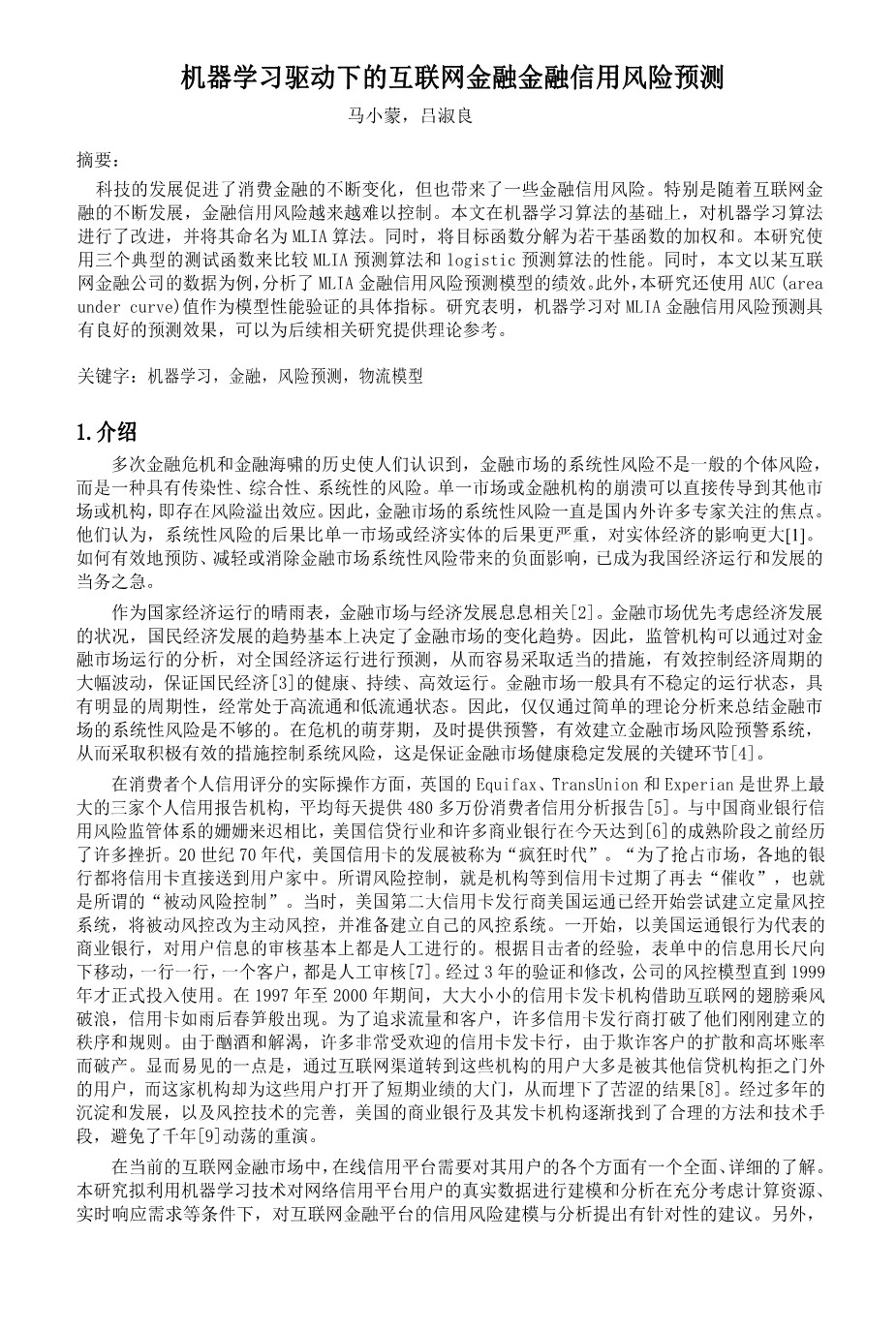 机器学习驱动下的互联网金融金融信用风险预测外文翻译资料