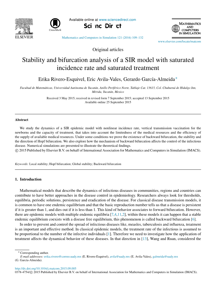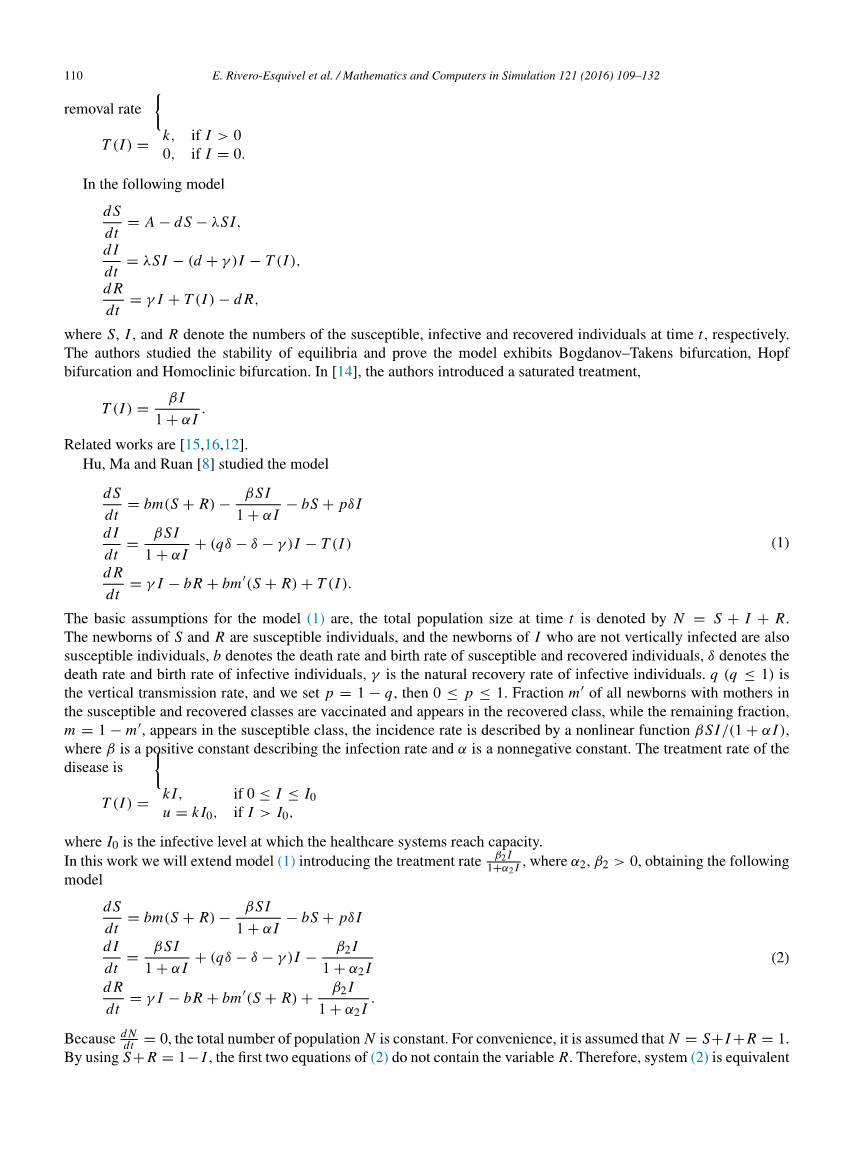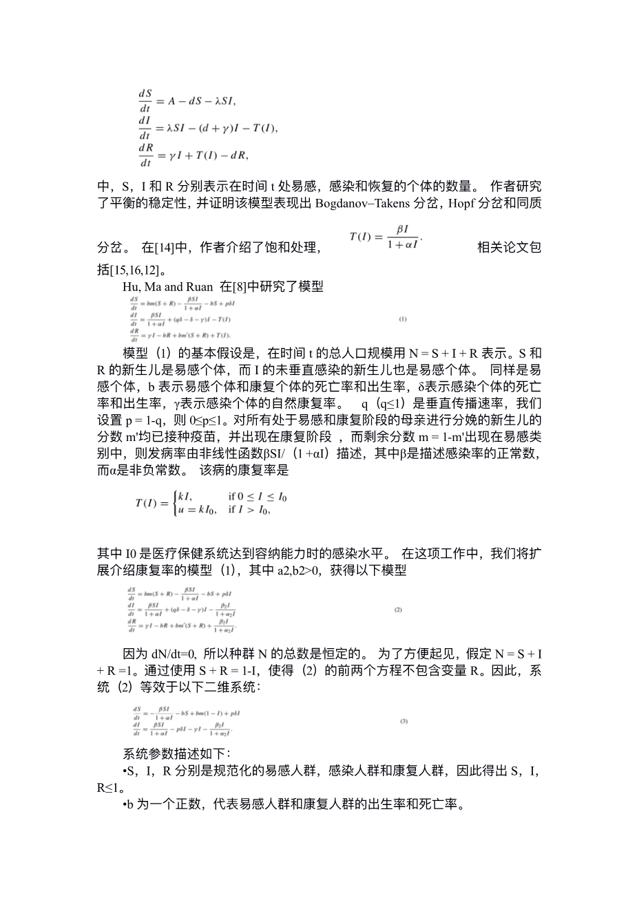 具有饱和发生率和饱和处理的SIR模型的 稳定性和分岔分析外文翻译资料