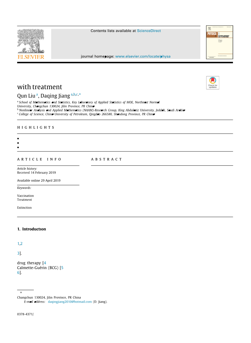 具有疫苗接种和治疗的肺结核随机动力学模型外文翻译资料