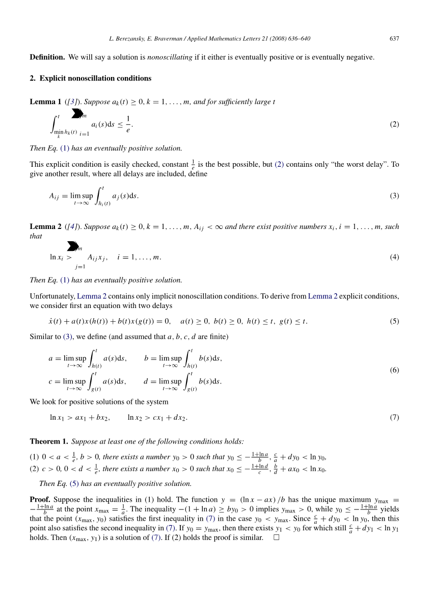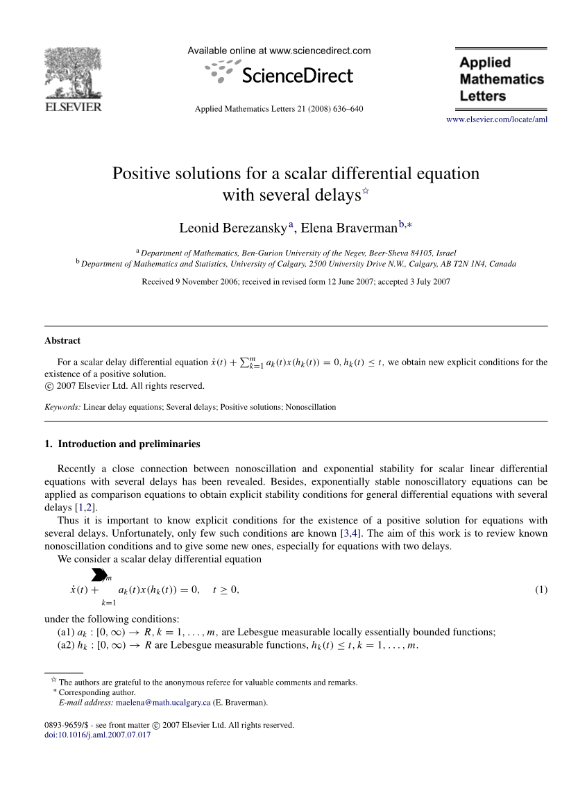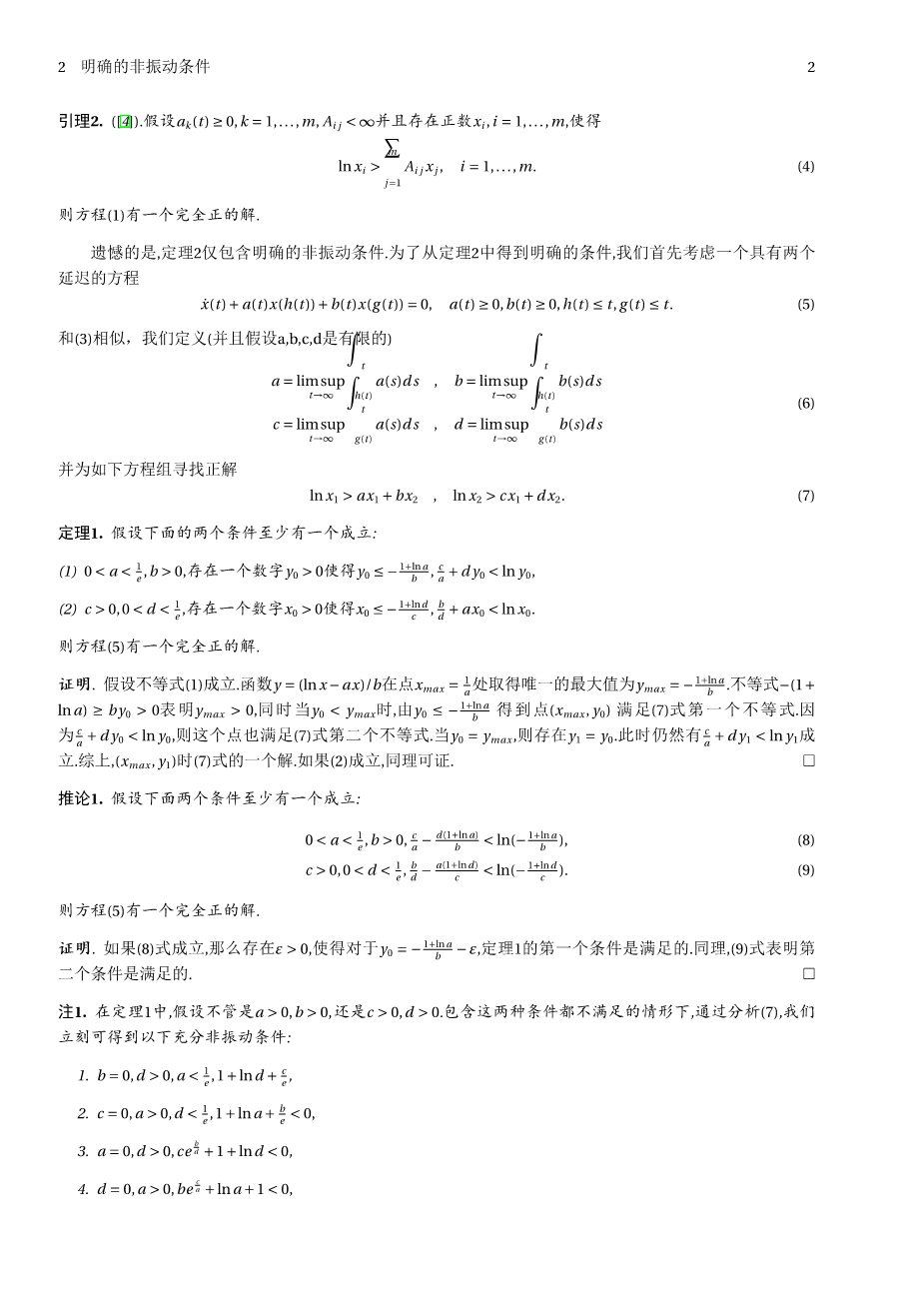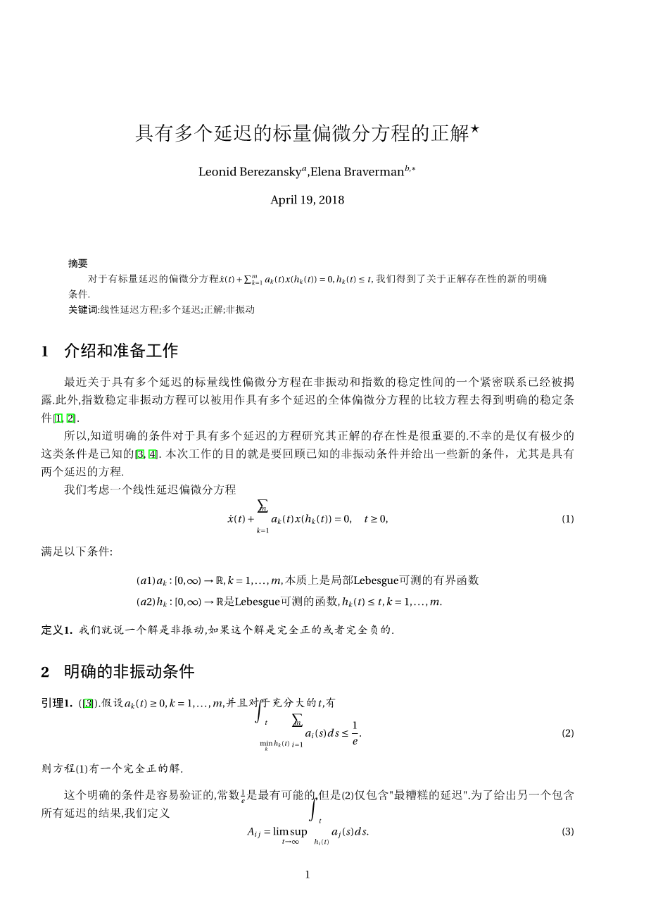 具有多个延迟的标量偏微分方程的正解外文翻译资料