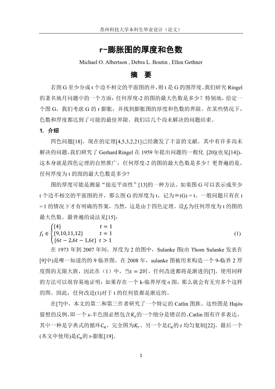 r-膨胀图的厚度和色数外文翻译资料